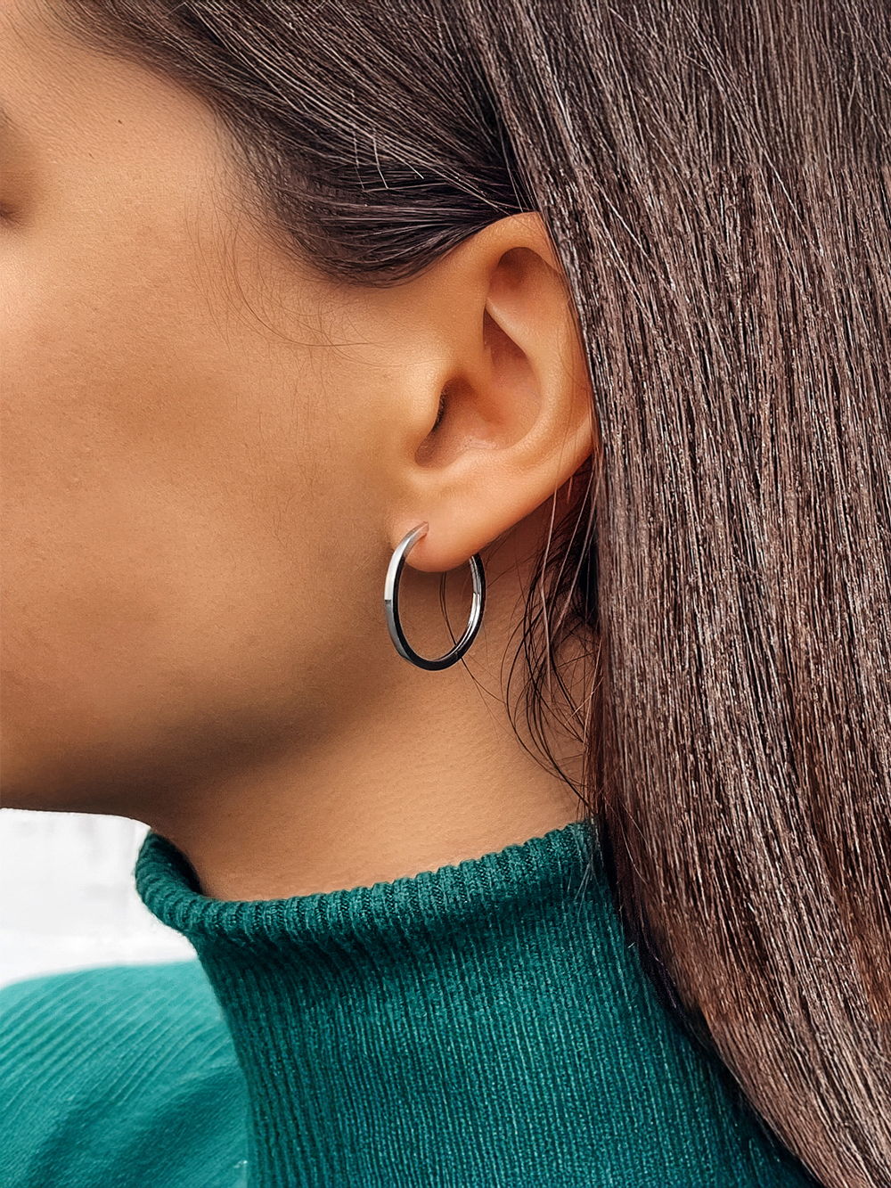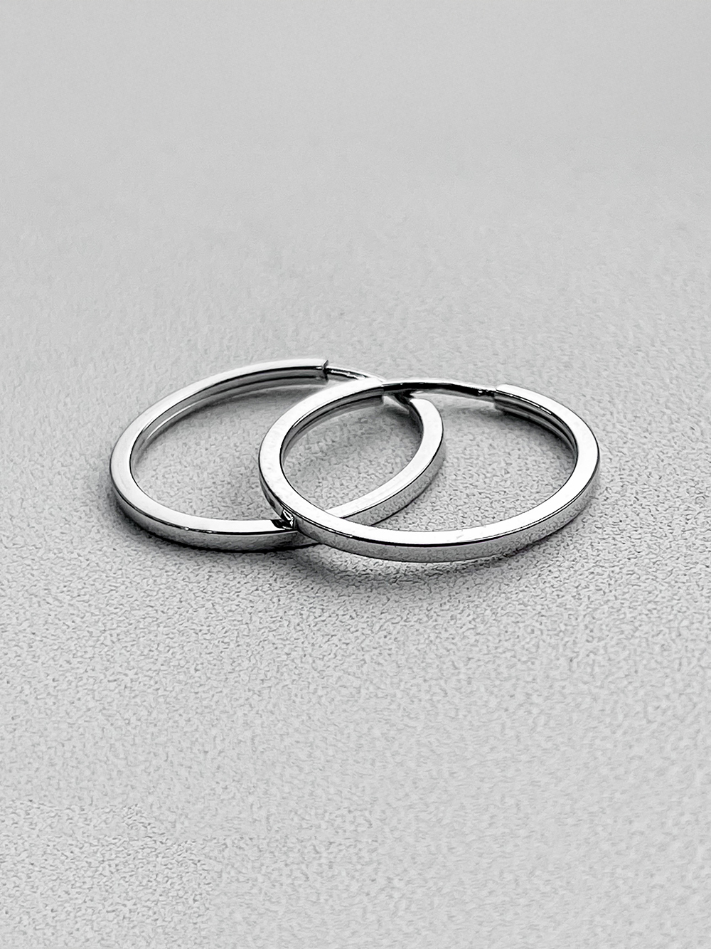 Stylowe srebrne kolczyki-pierścionki pokryte rodem.