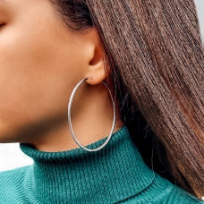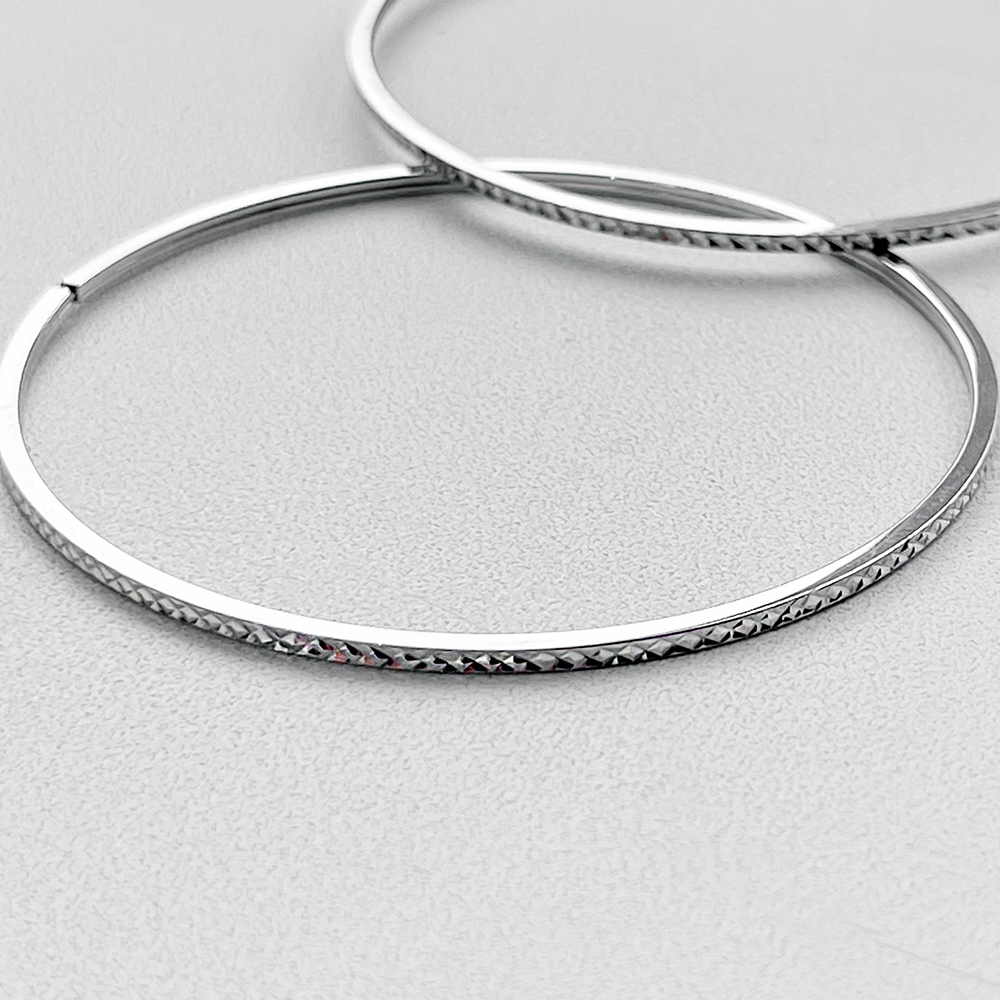 Stylowe srebrne kolczyki-pierścionki z powłoką rodu i diamentową fasetą.
