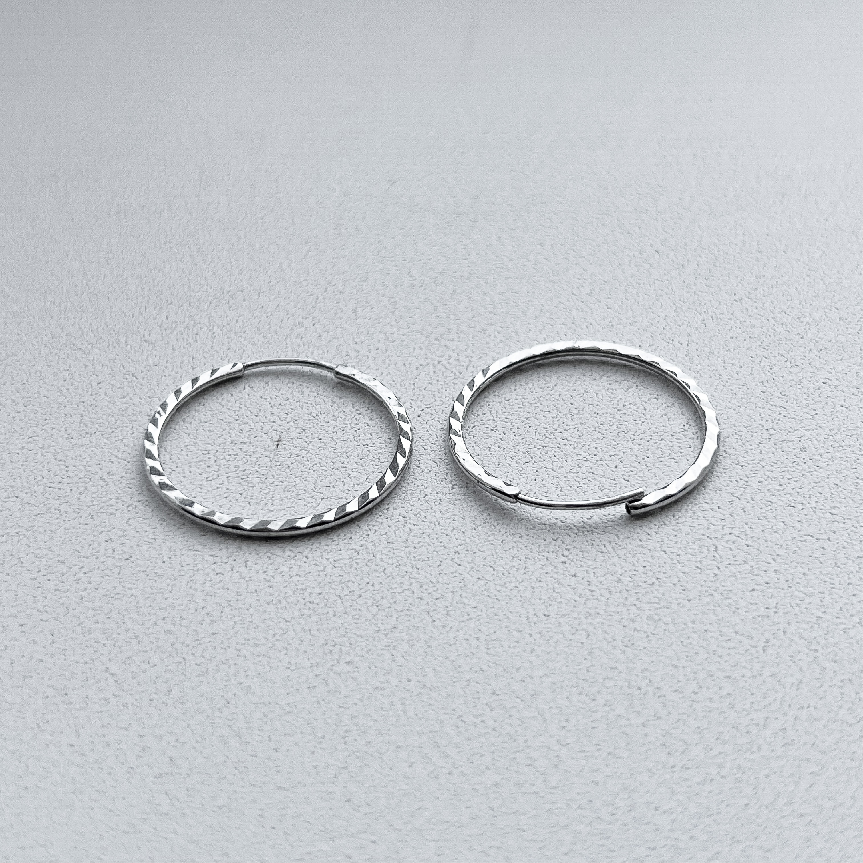 Srebrne kolczyki koła z fasetą diamentową, pokryte warstwą platyny i rodu dla maksymalnego blasku.