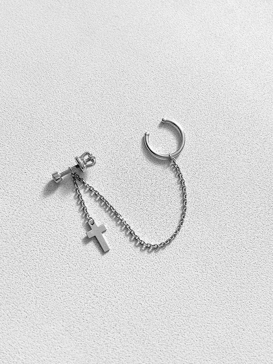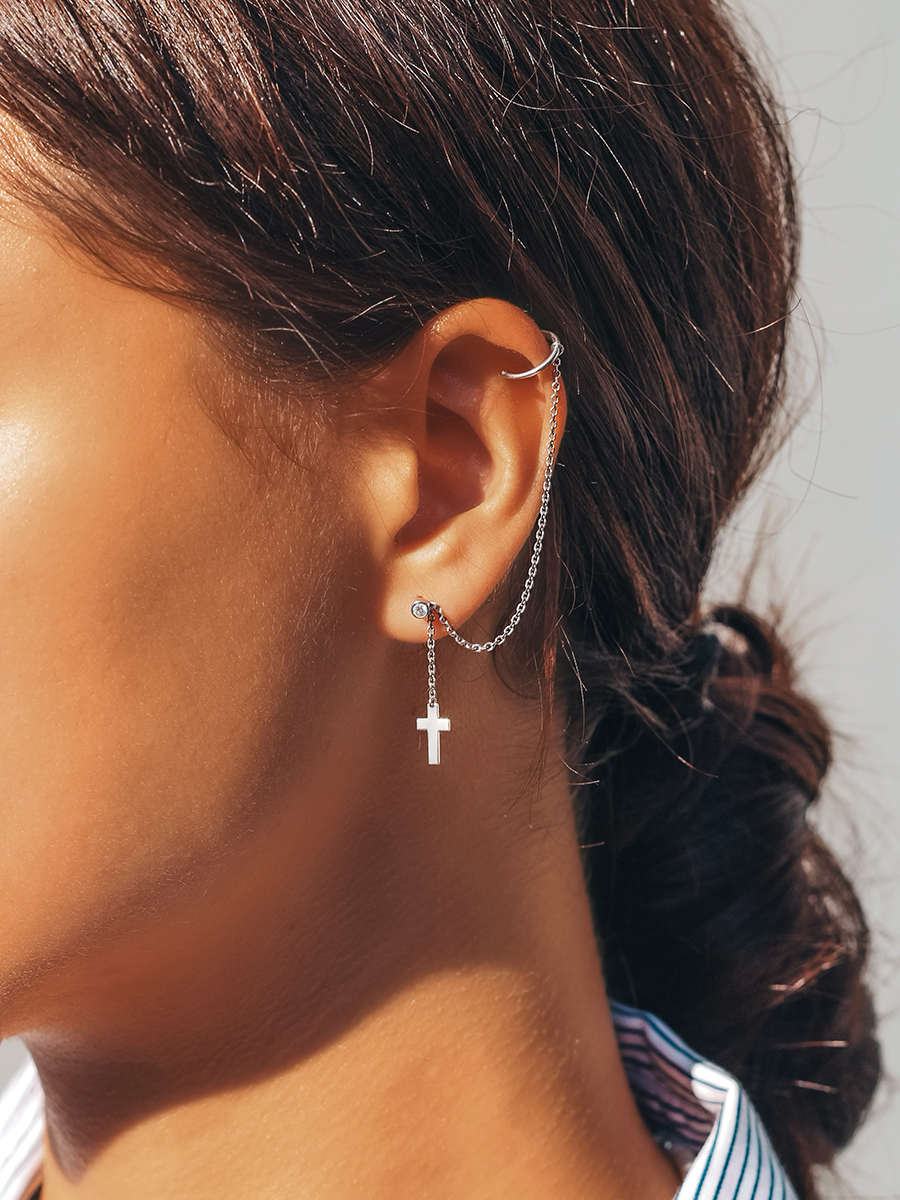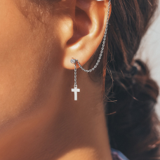 Srebrny pojedynczy kolczyk z rodowaniem.
