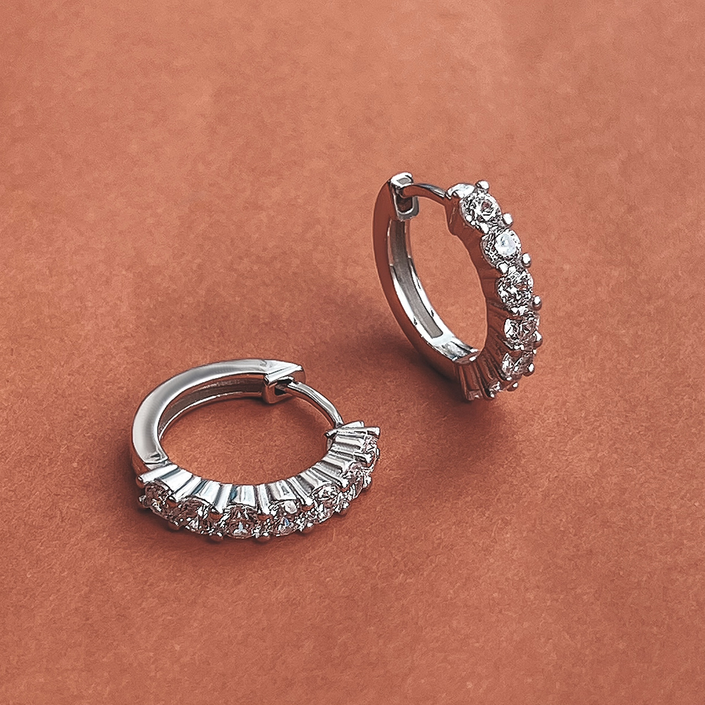 Wyrafinowane srebrne kolczyki ze ścieżką jasnych cyrkonii będą idealnym dodatkiem do każdej stylizacji.