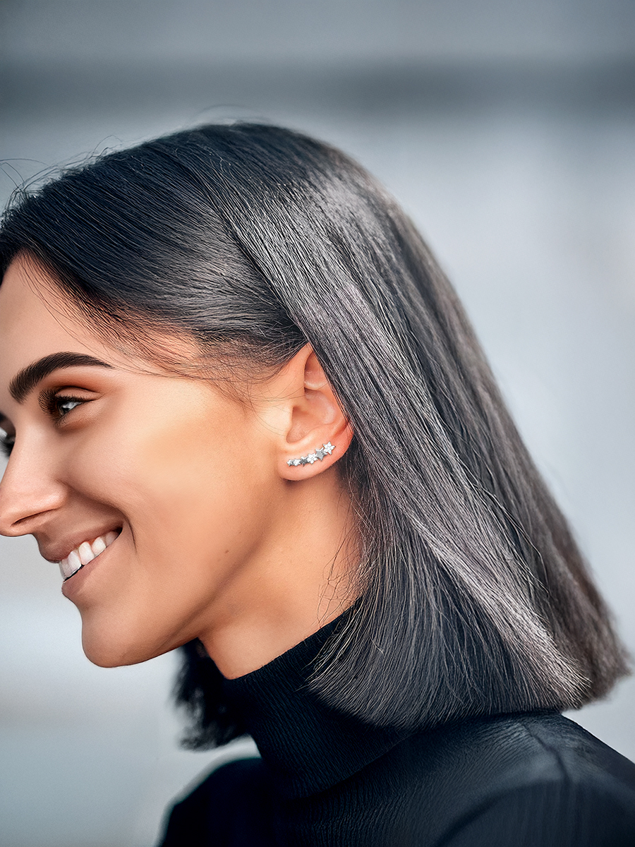 Stylowe, rodowane srebrne mankiety i cyrkonie sześcienne o szlifie diamentowym.