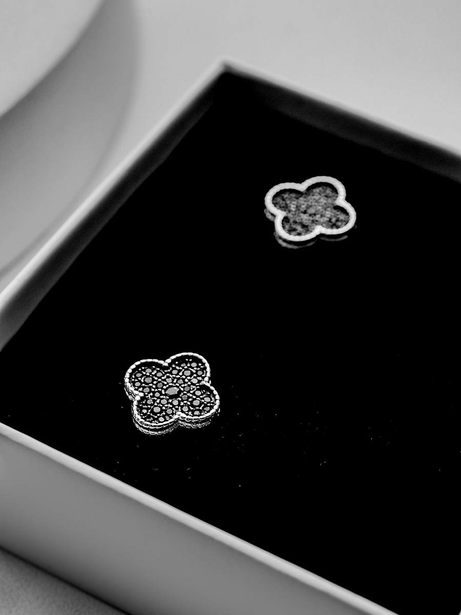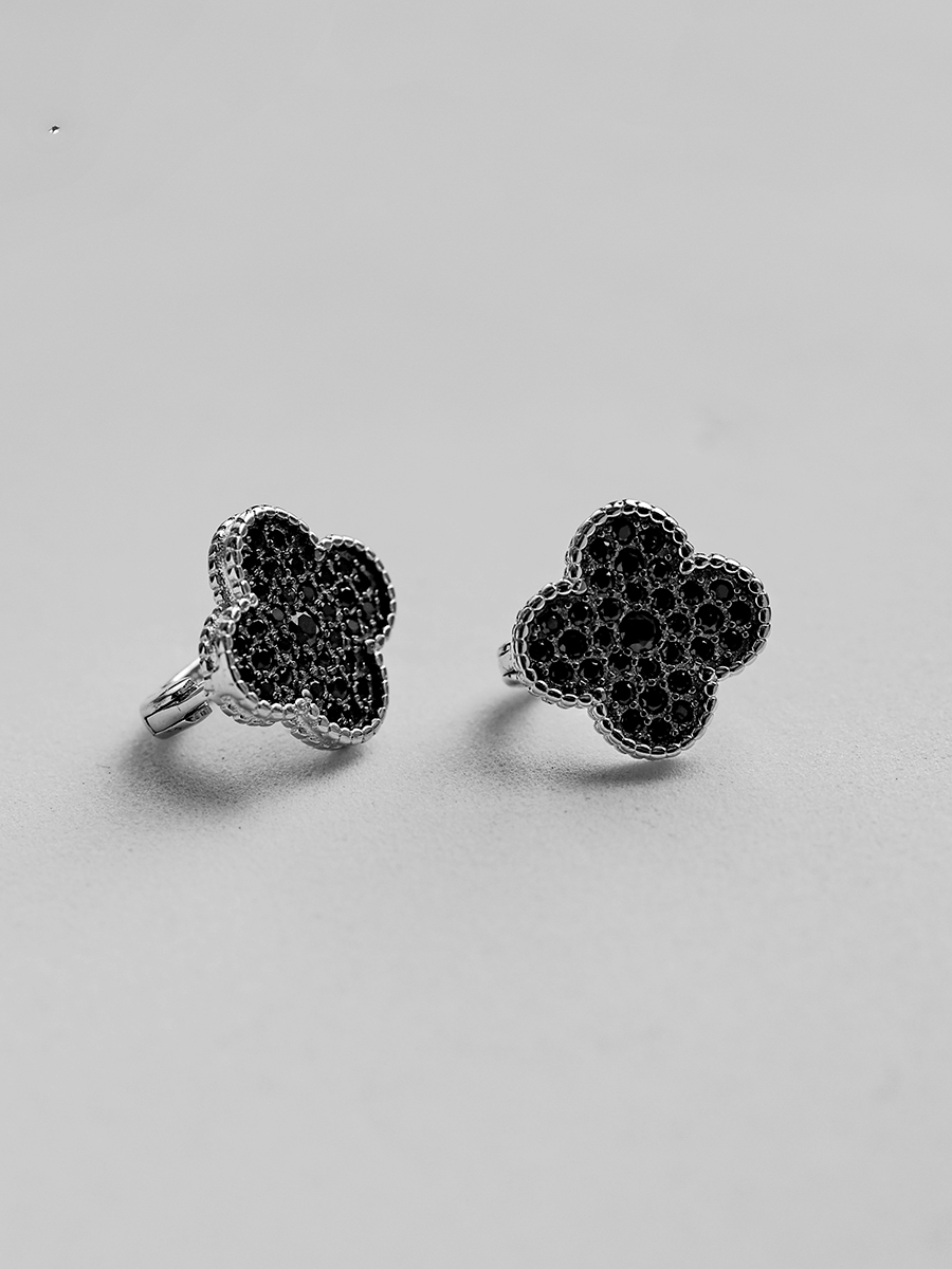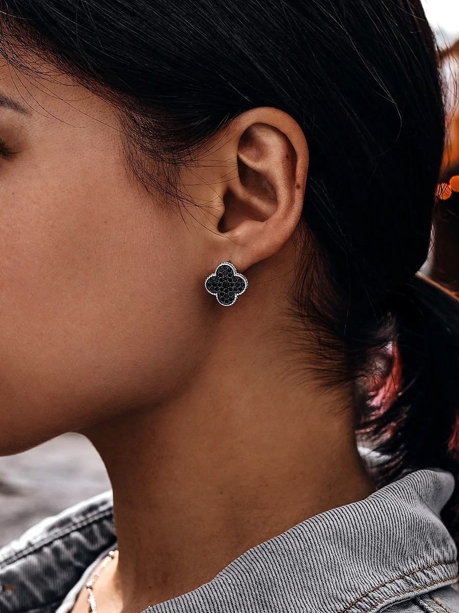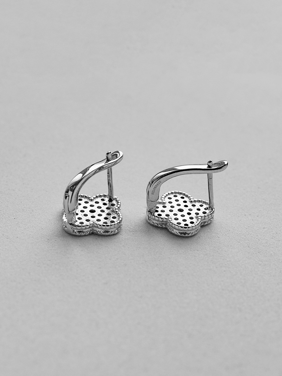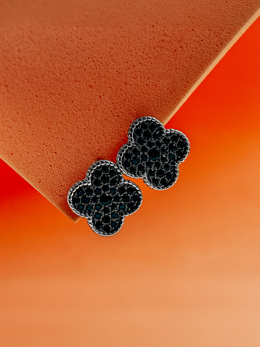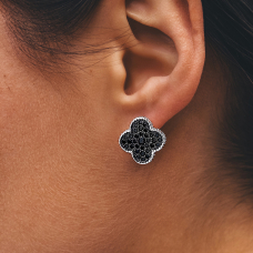 Трендові срібні сережки Чотирилисники з чорними фіанітами та родієвим покриттям, які додають образу елегантності та розкіші.