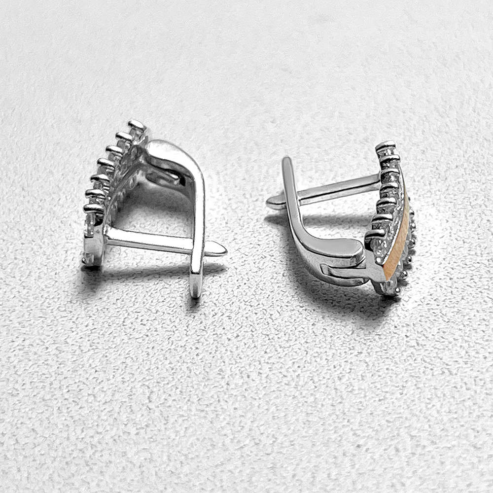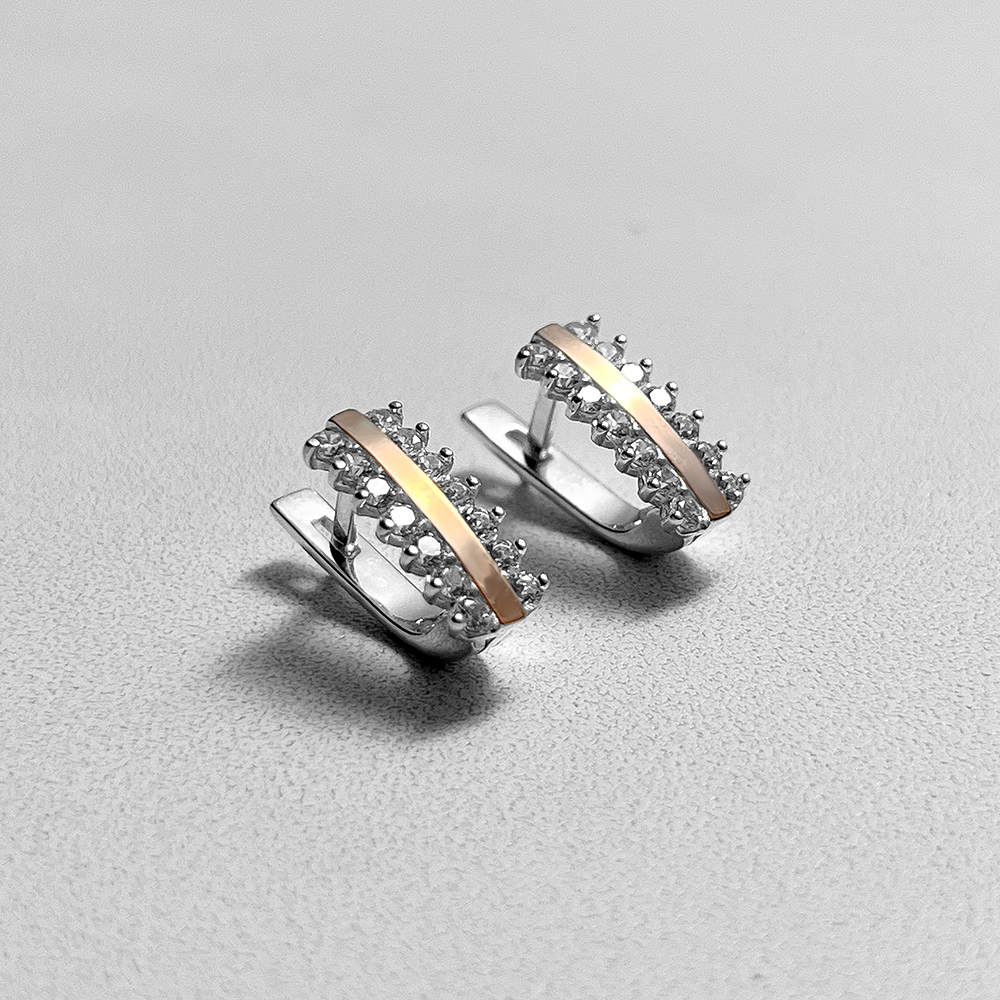 Spektakularne srebrne kolczyki ze wstawkami z naturalnego złota i cyrkoniami sześciennymi o szlifie diamentowym.