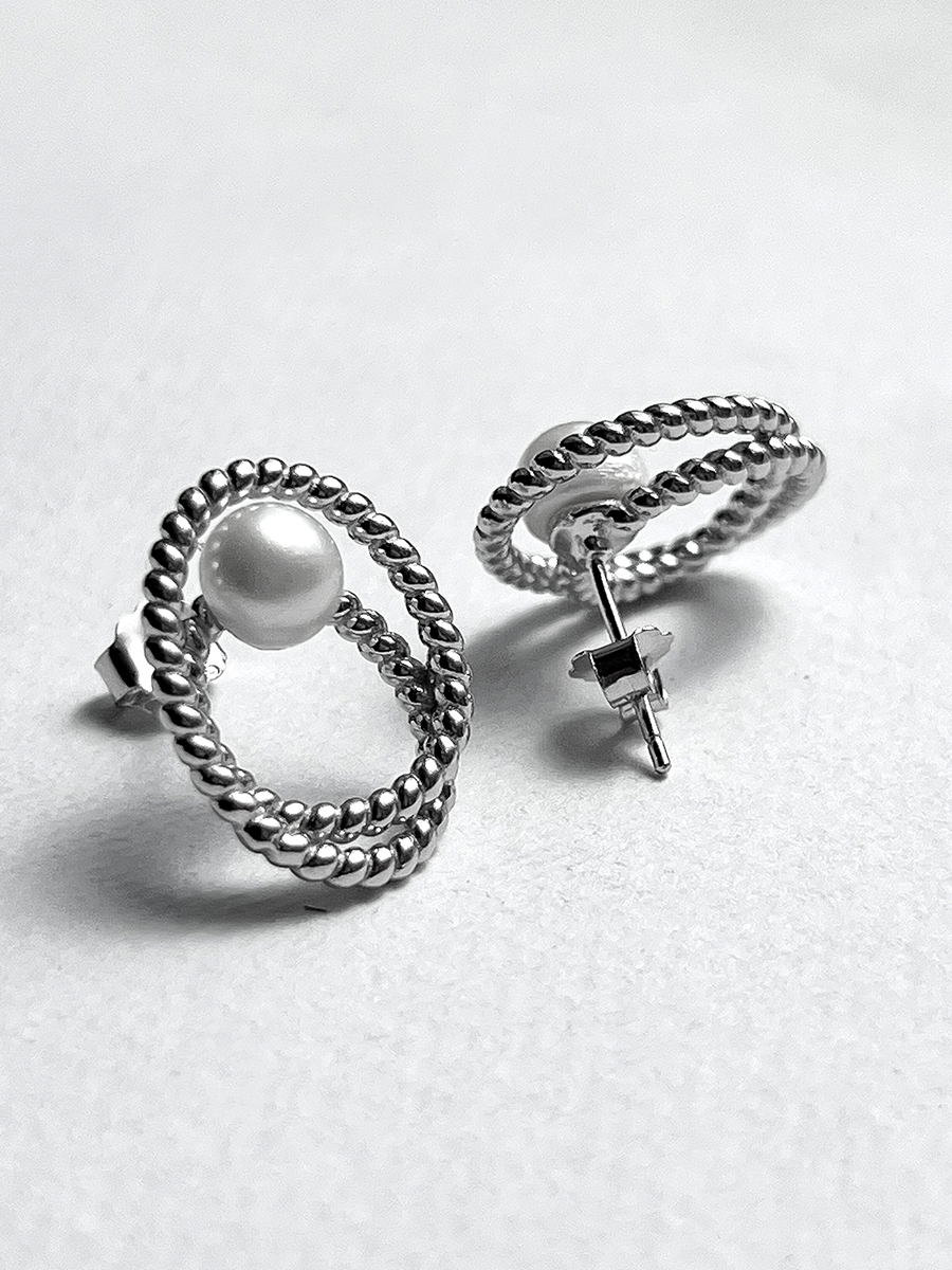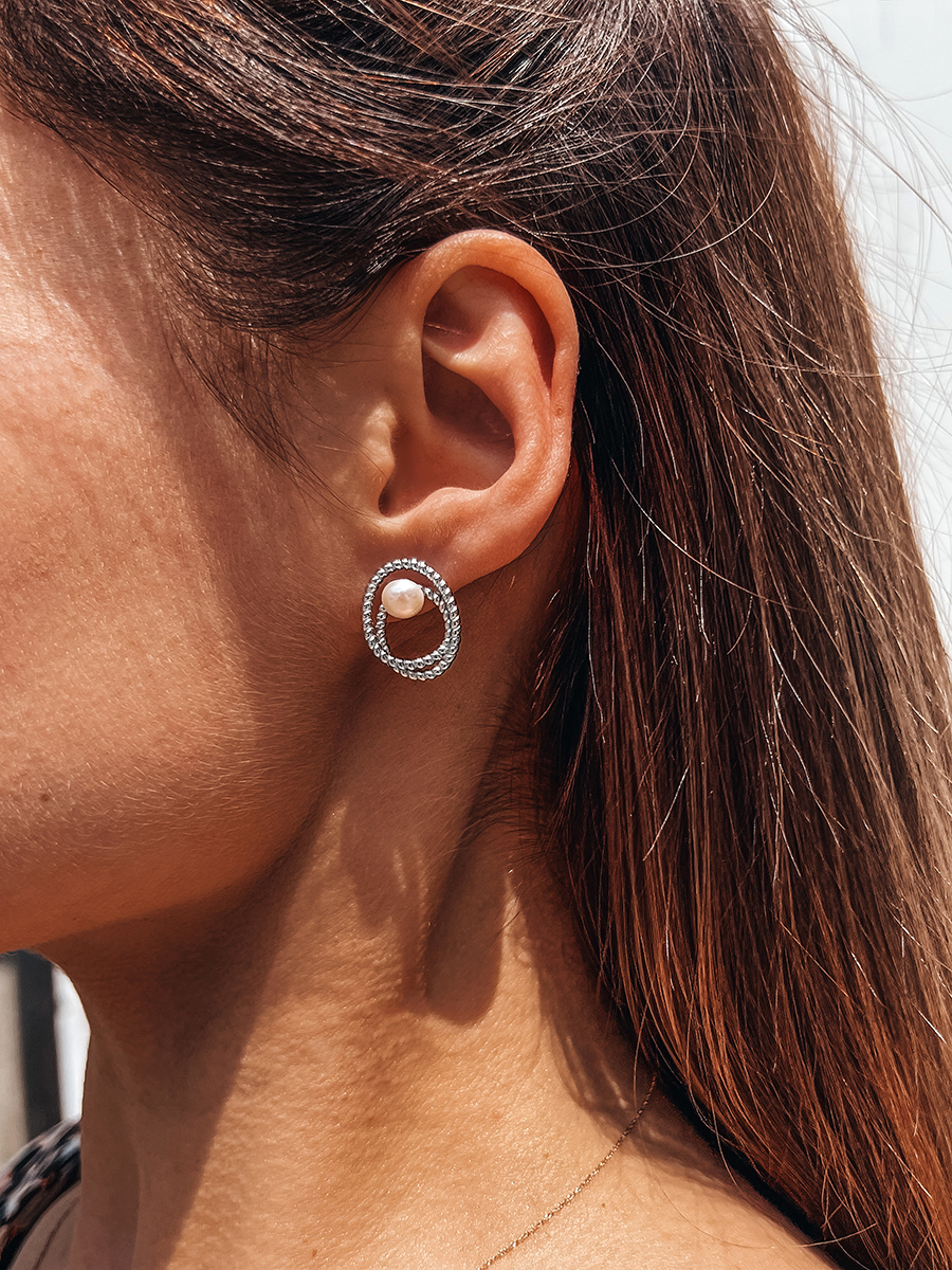 Srebrne kolczyki z naturalnymi perłami słodkowodnymi.