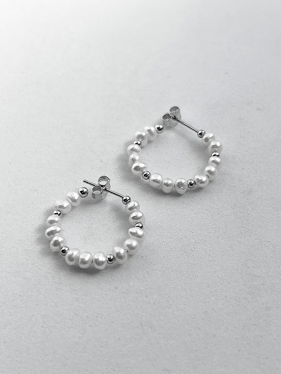 Ręcznie wykonane oryginalne srebrne kolczyki z naturalnymi perłami słodkowodnymi. Wyposażone w wygodne i niezawodne zapięcia na szpilki.