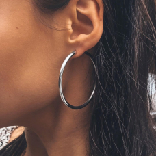 Стильніі срібні сережки-кільця із родієвим покриттям.