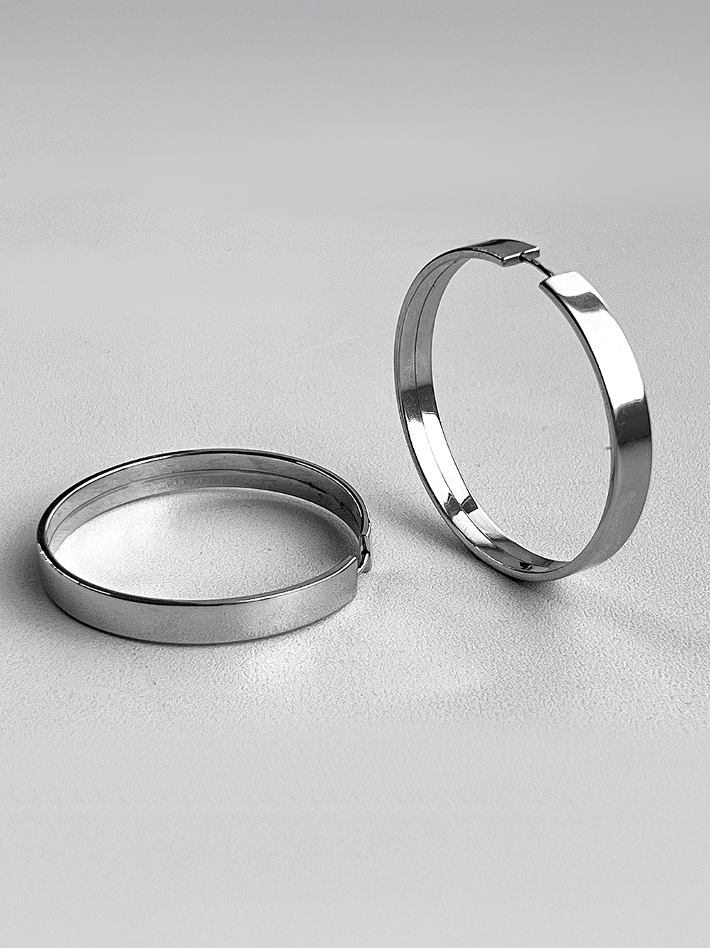 Стильніі срібні сережки-кільця із родієвим покриттям.