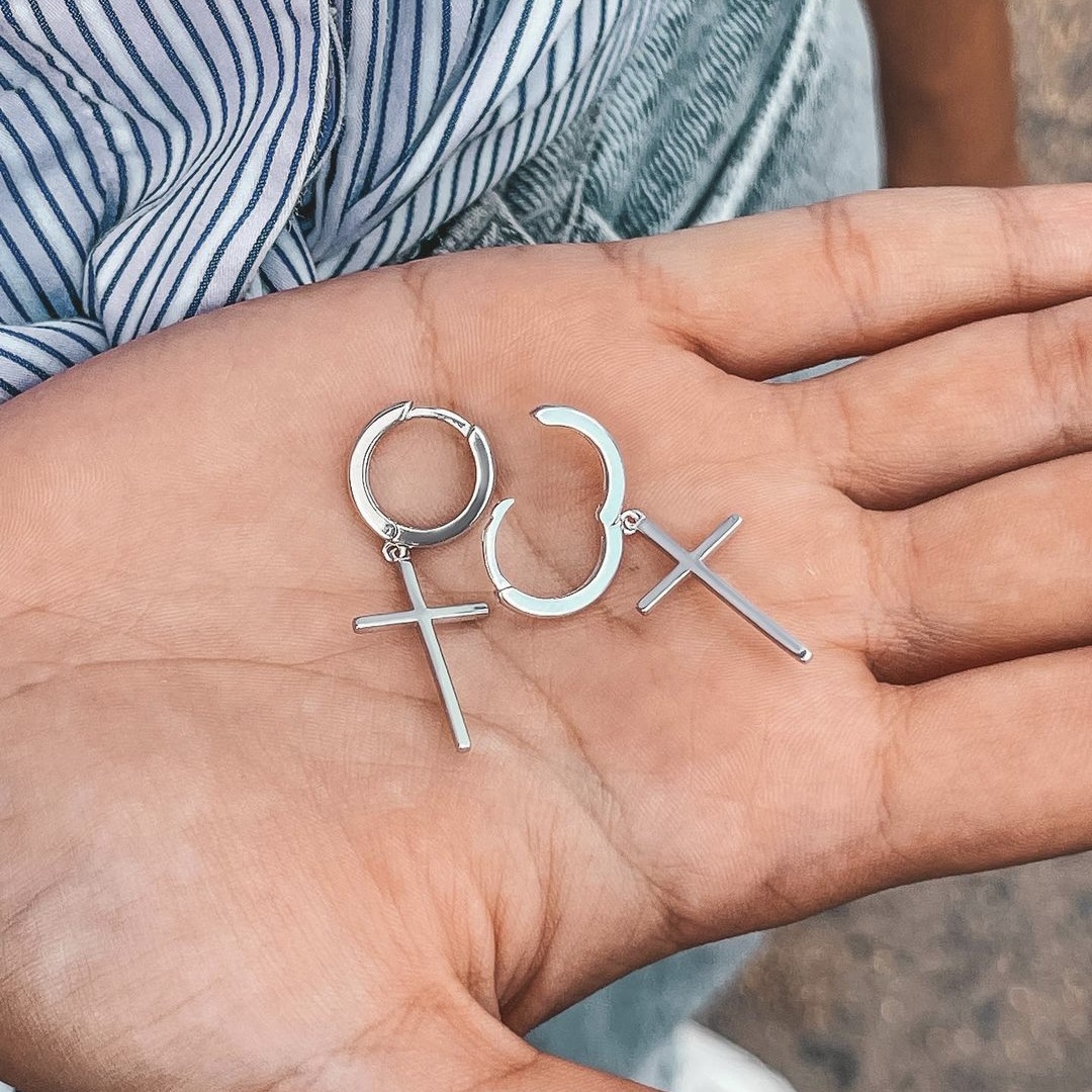 Стильні срібні сережки Хрестики із родієвим покриттям.