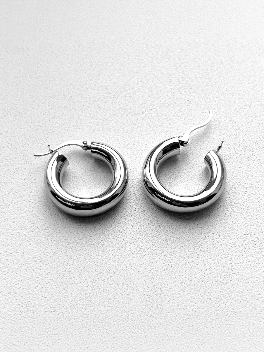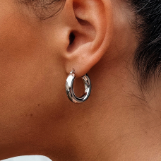 Стильні срібні сережки-кільця із родієвим покриттям.