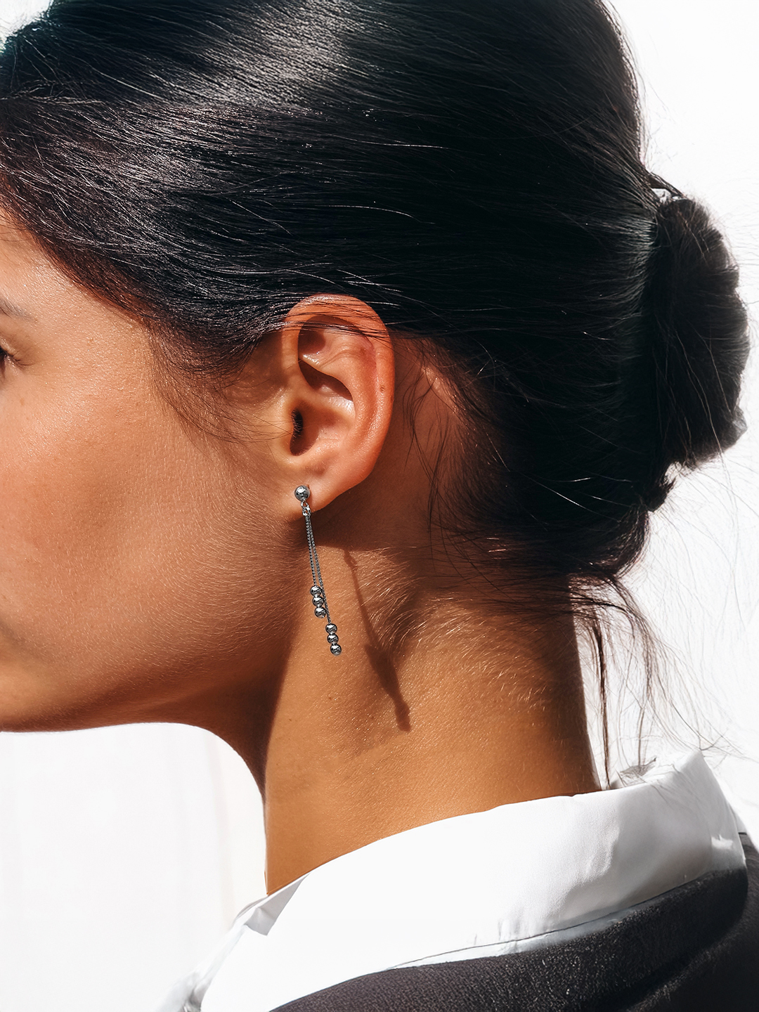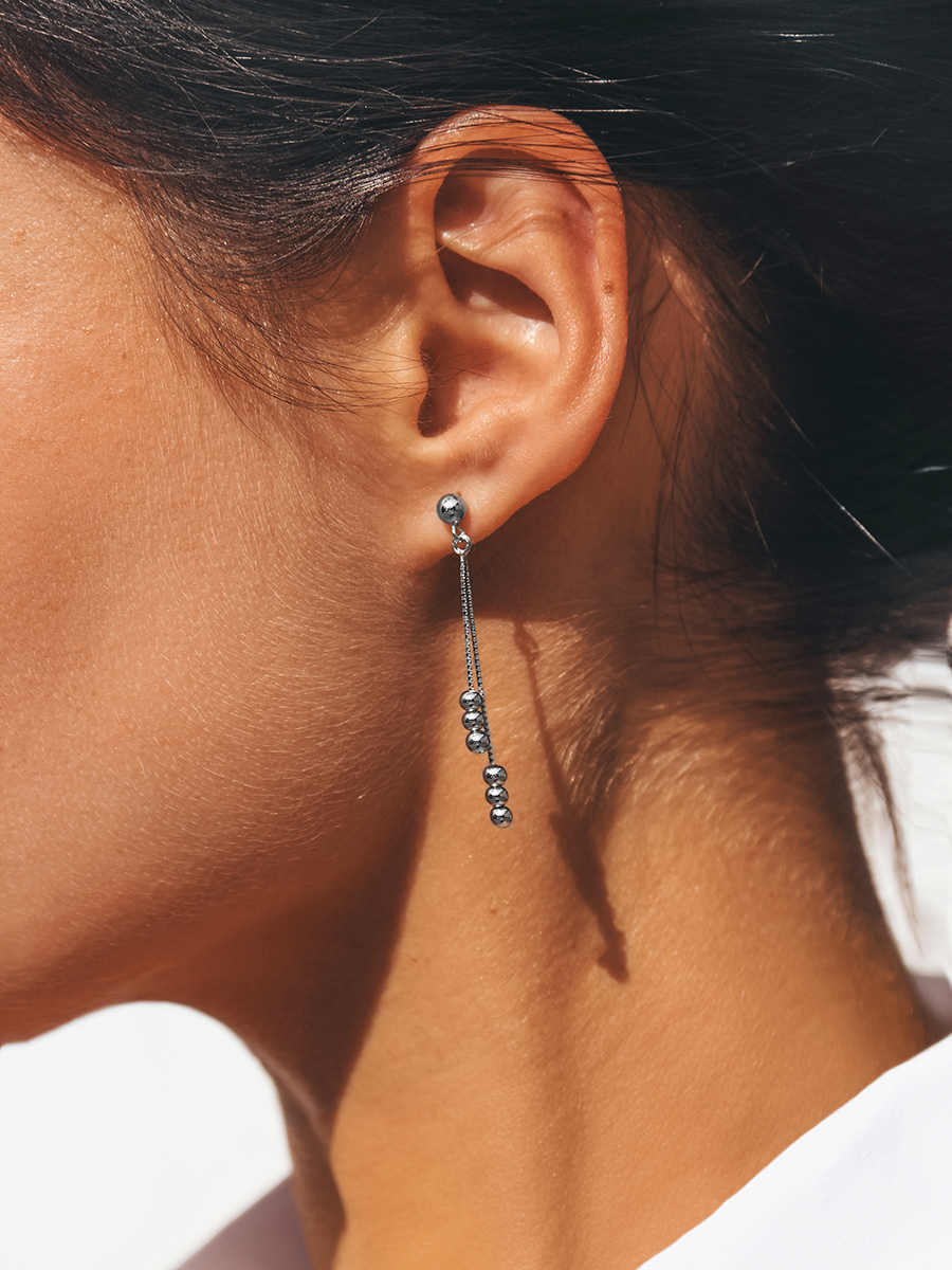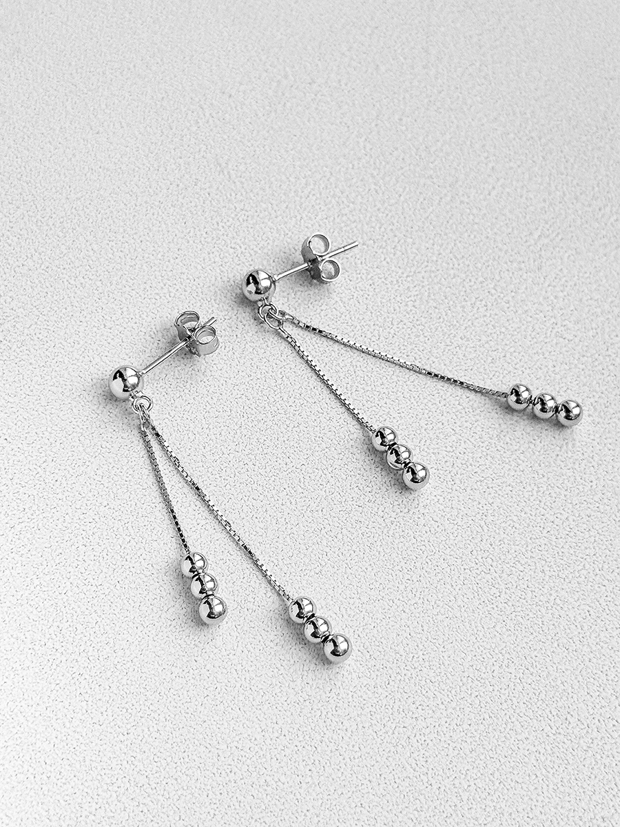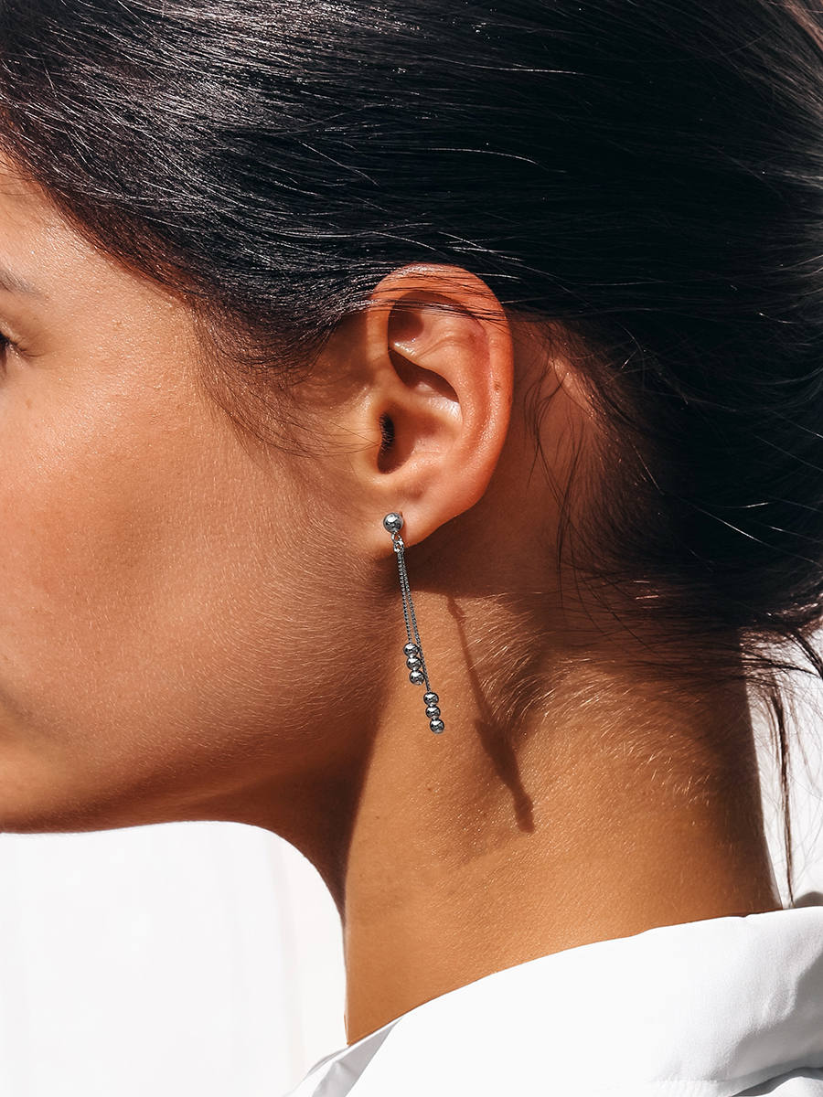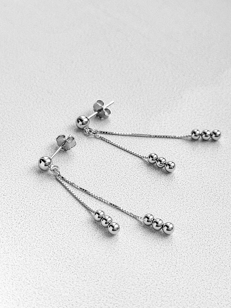 Стильні та лаконічні срібні сережки з кульками. Розмір кулбок 3 та 2 мм. Довжина 40 мм.