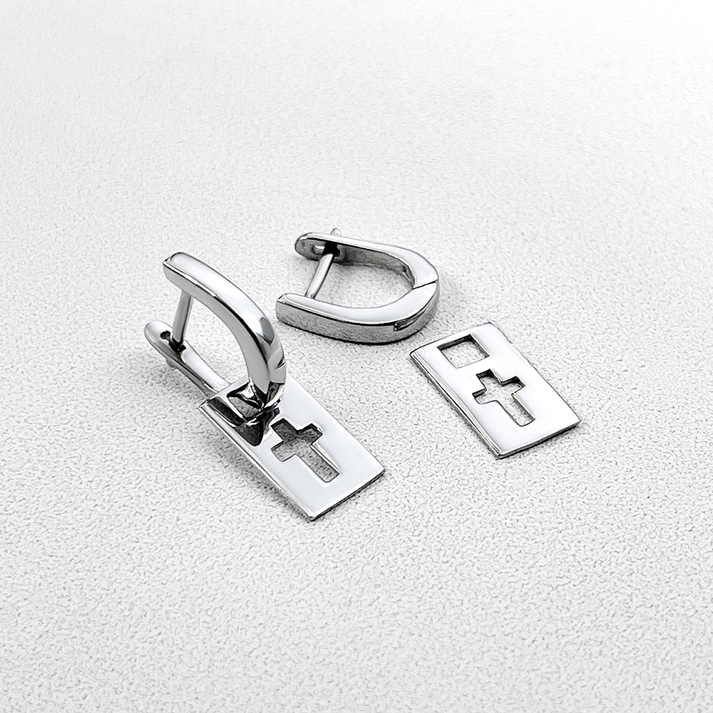Сережки без вставок Срібло 925° (родій) 20078