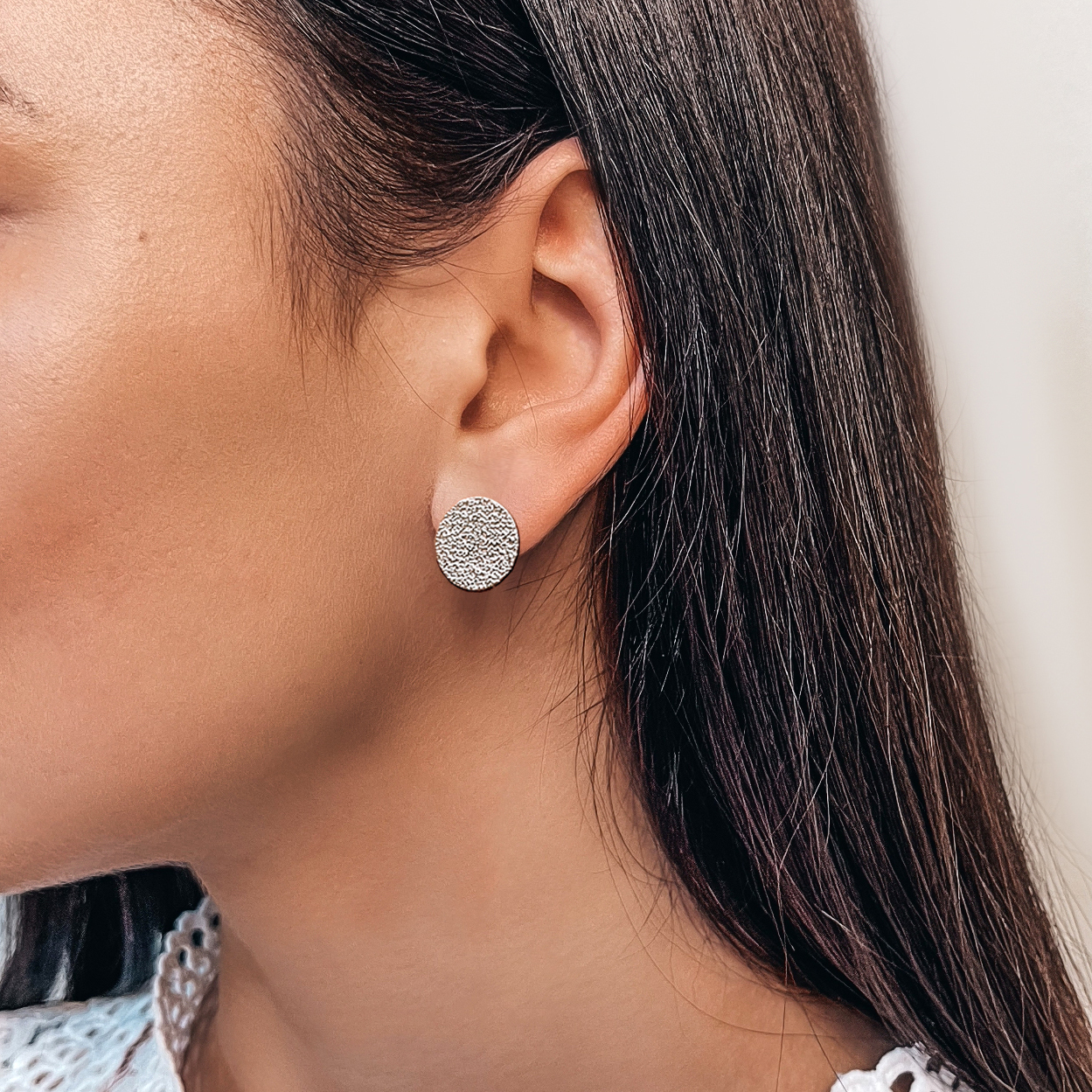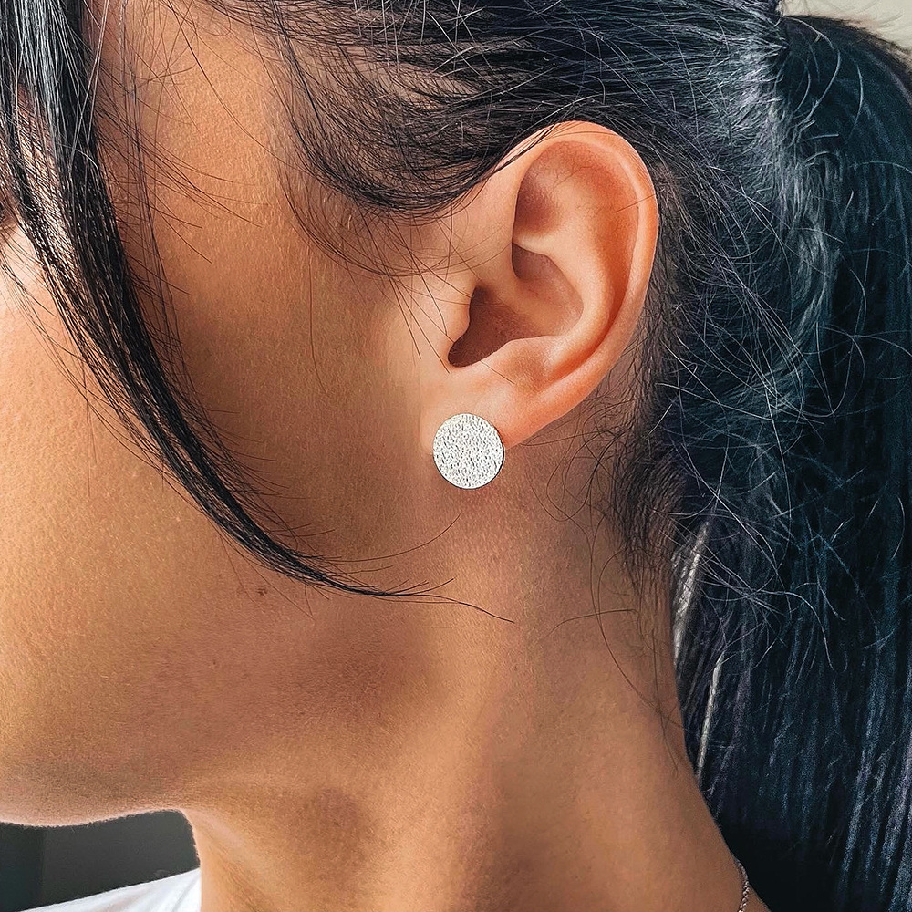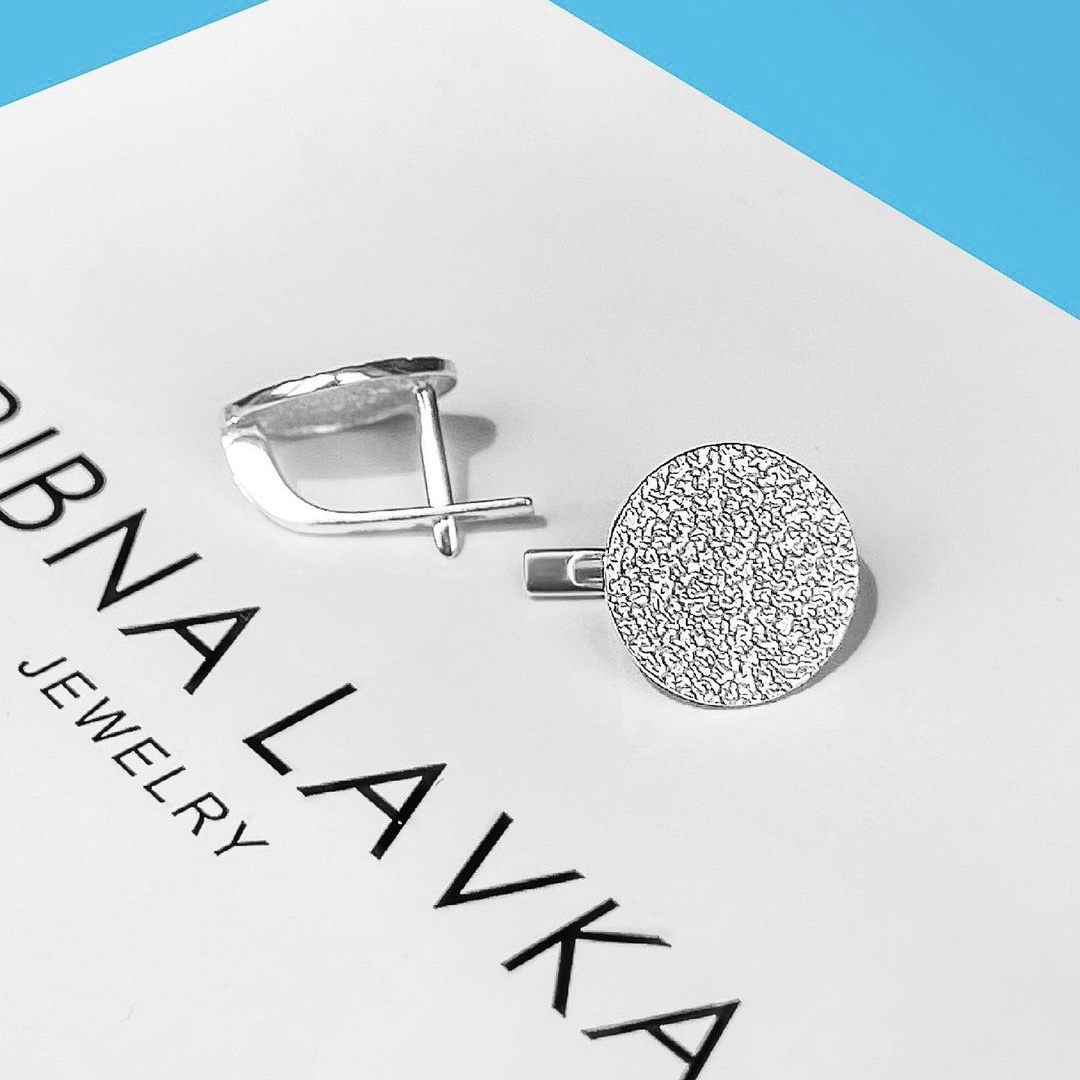 Срібні сережки Монетки із родієвим покриттям та фактурною поверхнею. Стильні та комфортні.