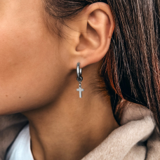 Стильні срібні сережки ""Хрестики"", в яких підвіски можна зняти та одягнути на ланцюжок або браслет. Діаметр 11 мм.,розмір підвісів 15х7 мм.