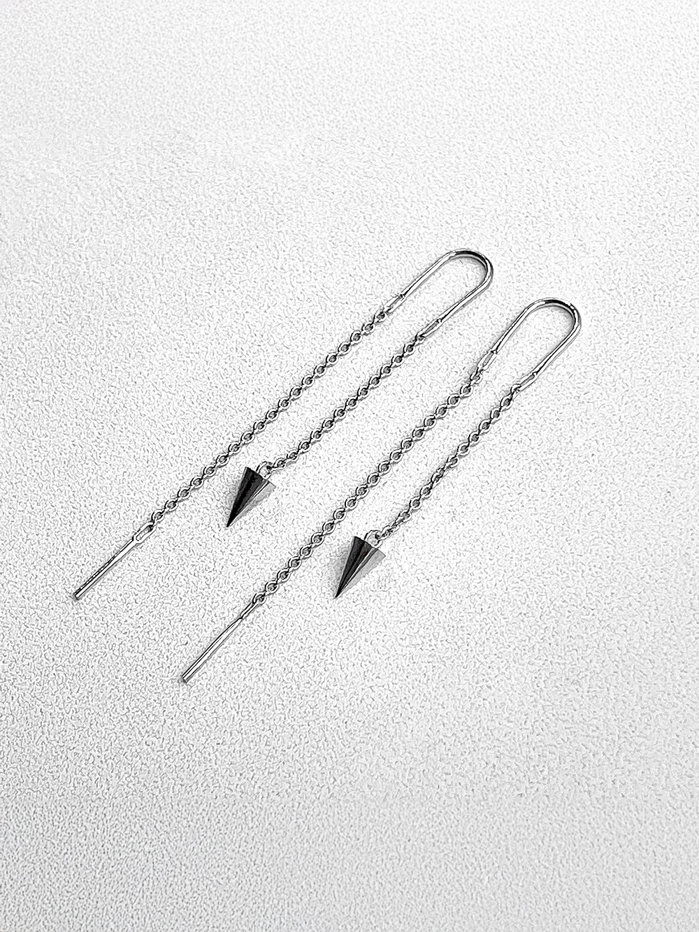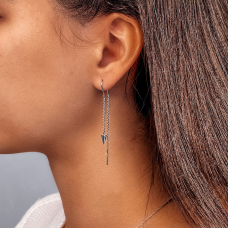 Стильні срібні сережки-протяжки з родієвим покриттям.