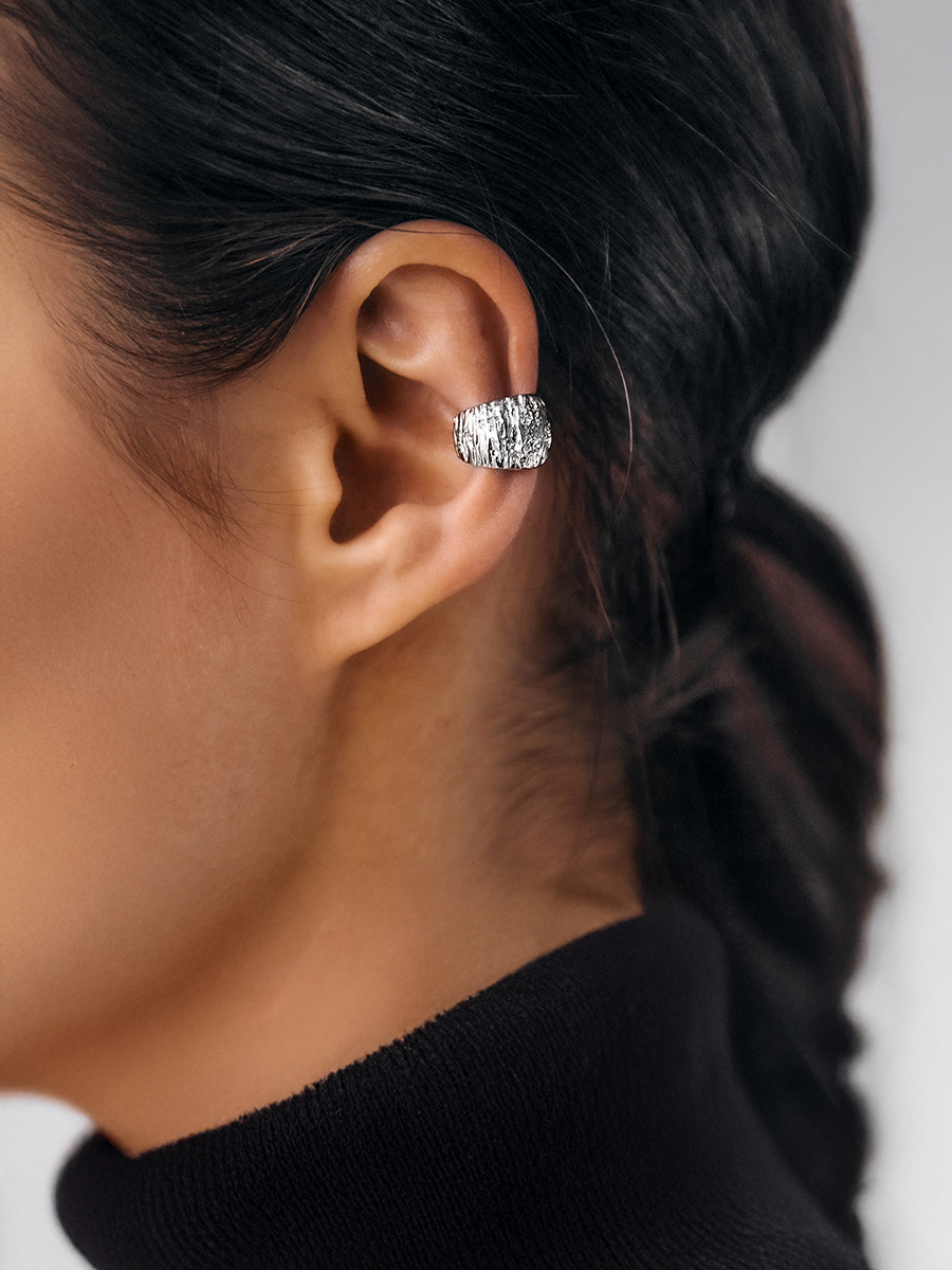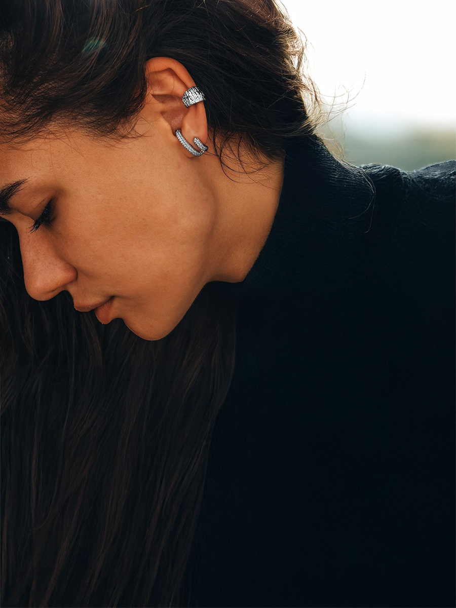 Стильна срібна моносережка створена вручну. Моносережки можна одягати як поодиноку прикрасу та комбінувати між собою, одягати декілька на одне вушко і створювати яскраві образи.