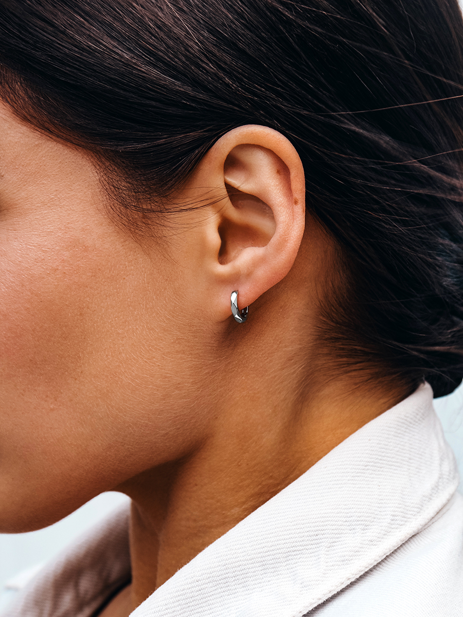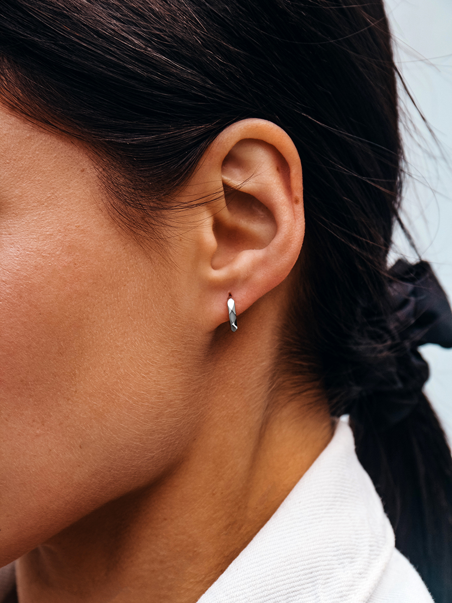 Лаконічна срібна моносережка з граннями. Для мочки та хрящика вушка.
