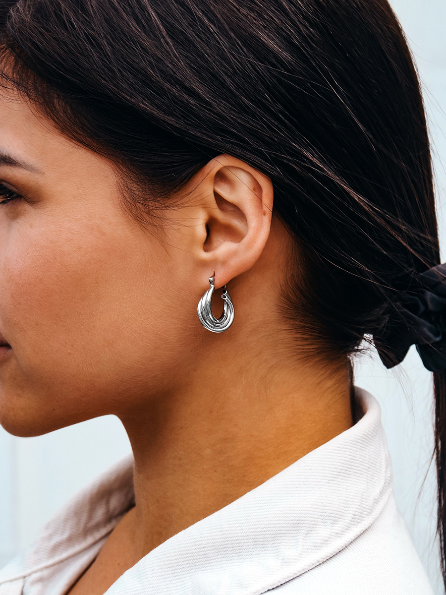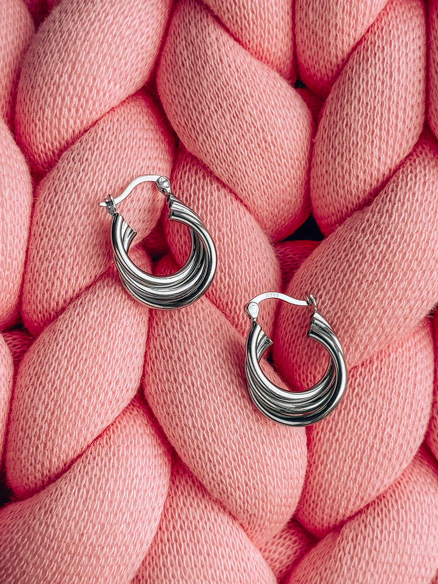 Стильні срібні сережки із родієвим покриттям.