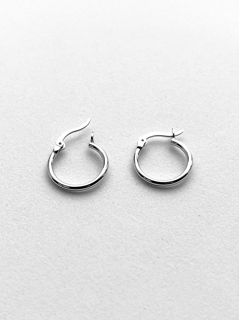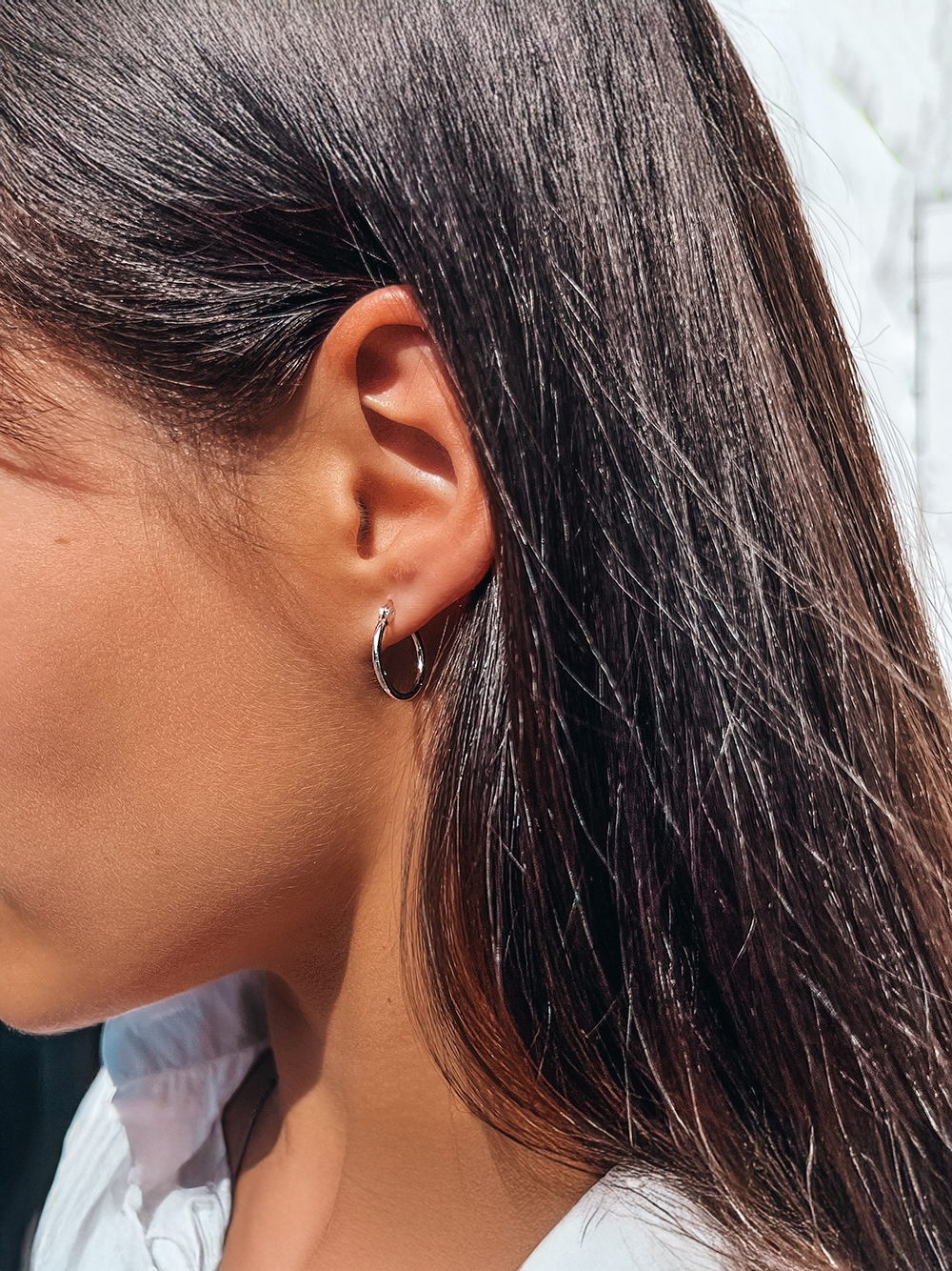 Стильніі срібні сережки-кільця із родієвим покриттям.