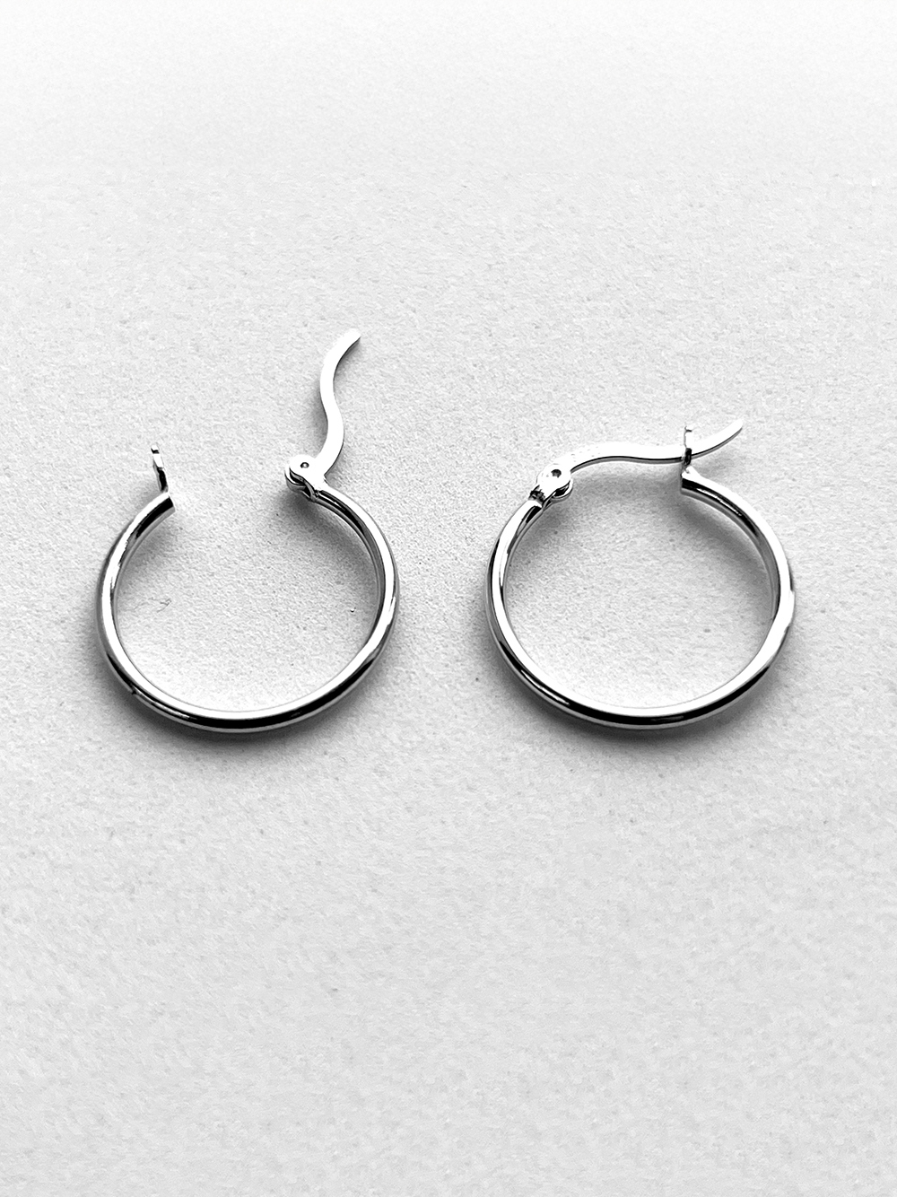 Стильніі срібні сережки-кільця із родієвим покриттям.