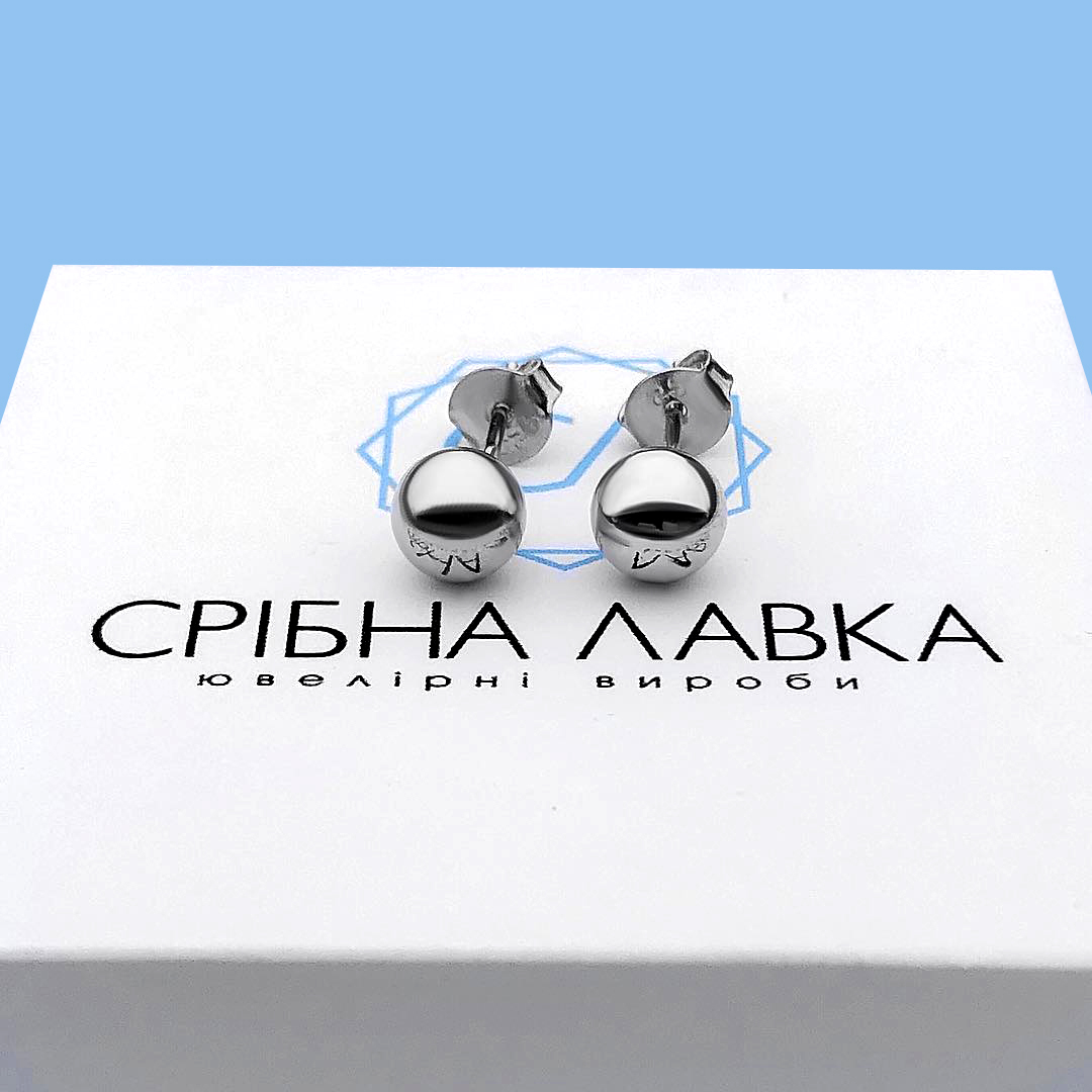 Срібні пусети кульки із родієвим покриттям та надійними і зручними штифтовими застібками.
