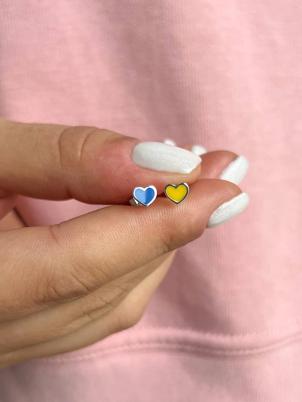 Ніжні і такі милі срібні пусети в найдорожчих серцю кольорах Срібні сержки з гвинтовими застібками та емаллю