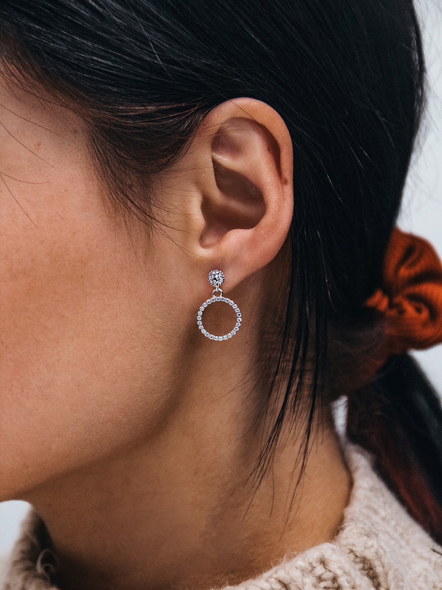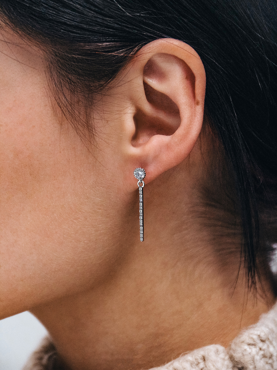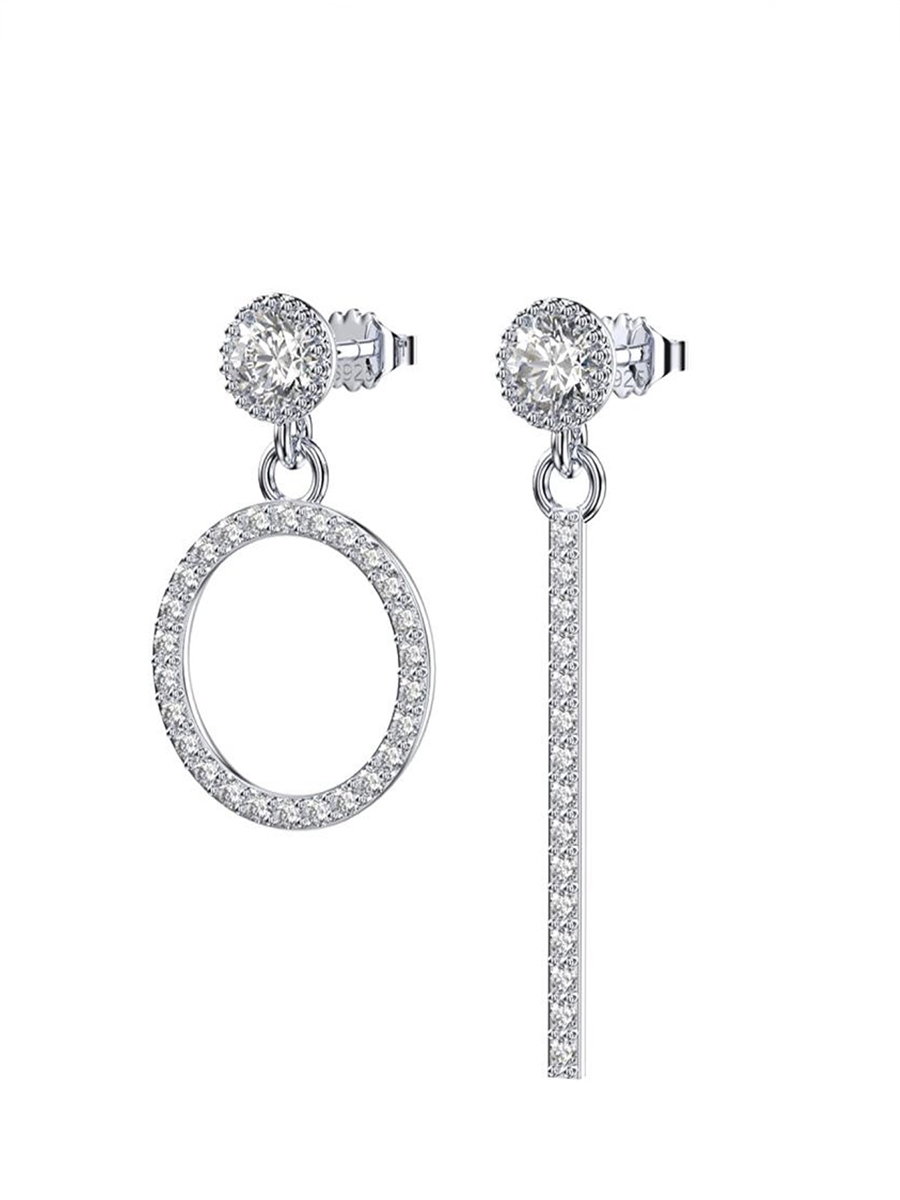 Асиметричніі срібні сережки із фіанітами та родієвим покриттям.