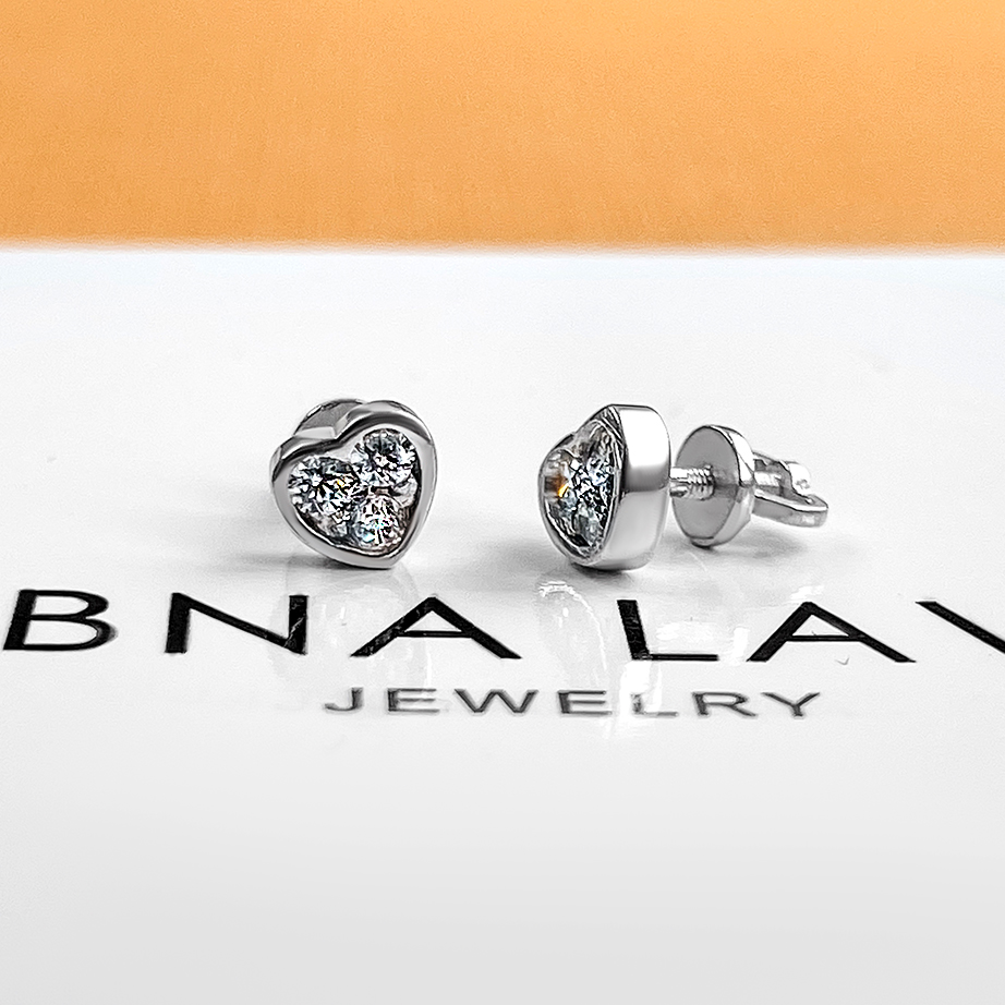 Срібні пусети у вигляді седець з фіанітами із гвинтовими застібками.