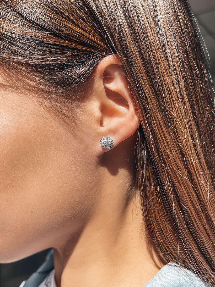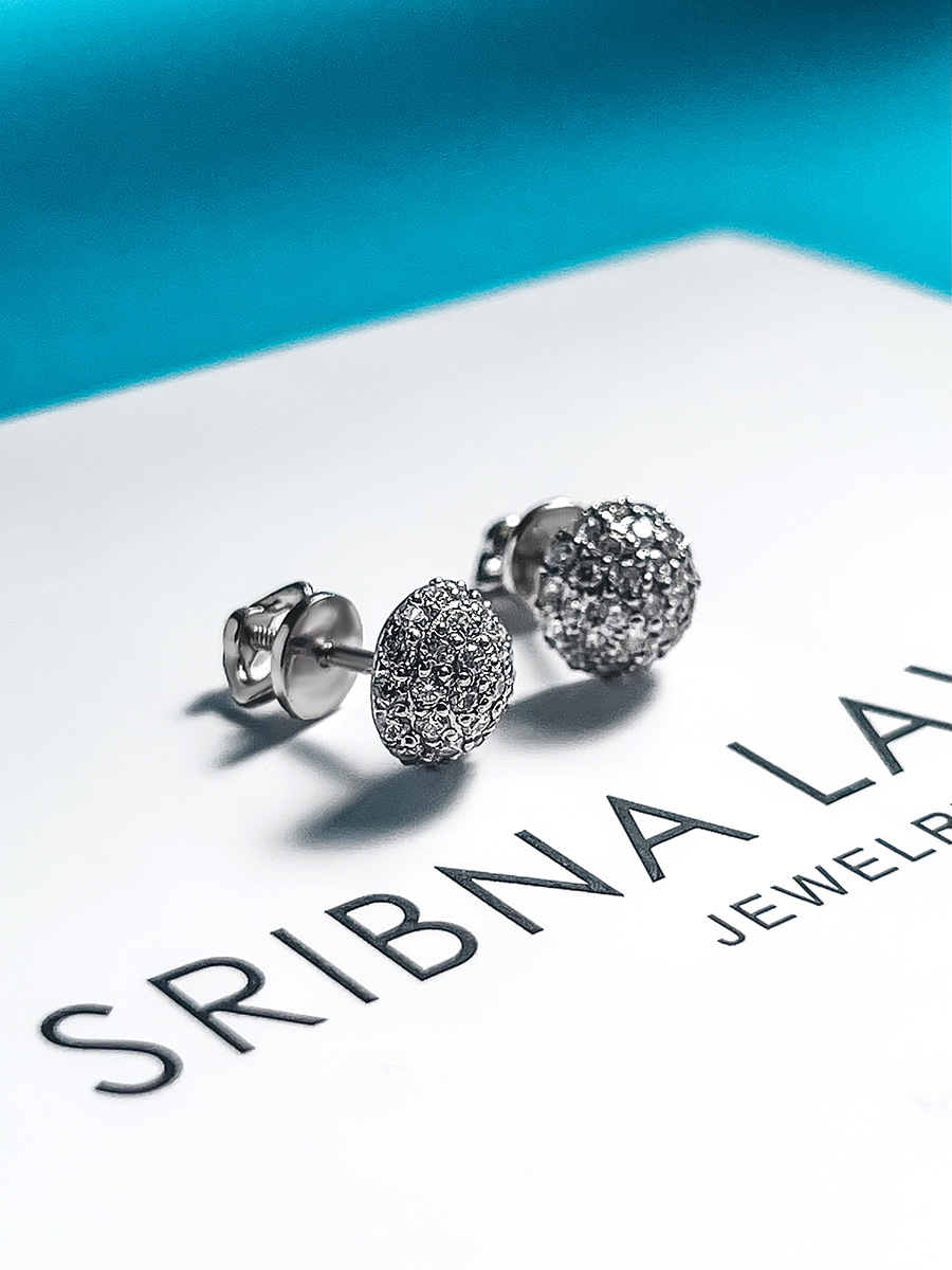 Яскраві срібні пусети із родієвим покриттям.