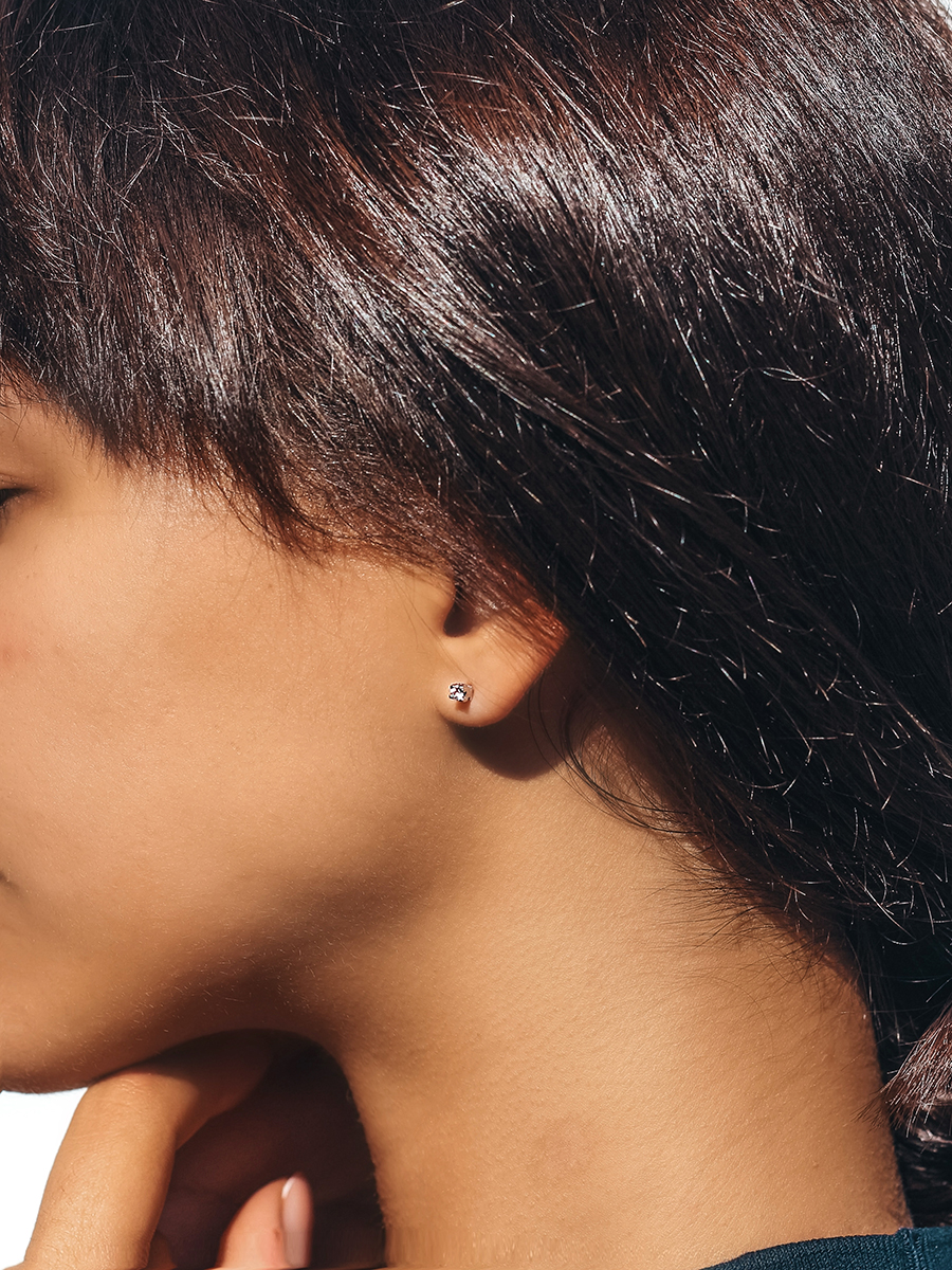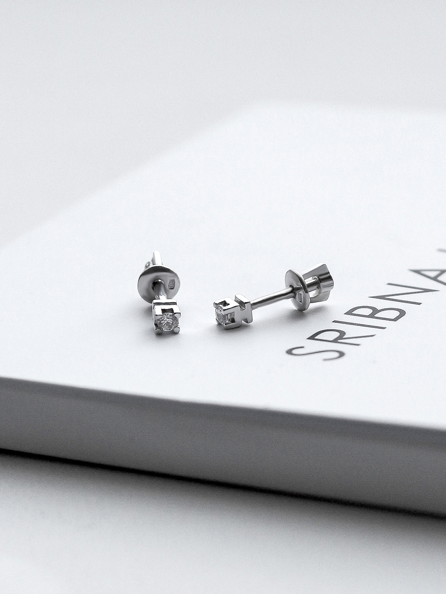 Крихітні срібні пусети із родієвим покриттям та яскравими фіанітами.