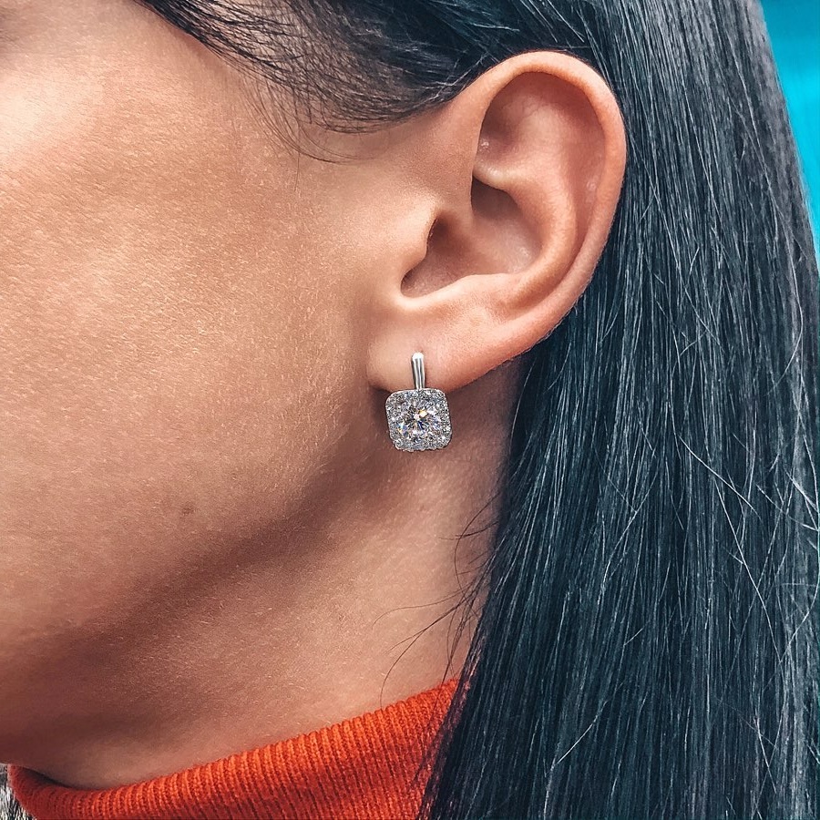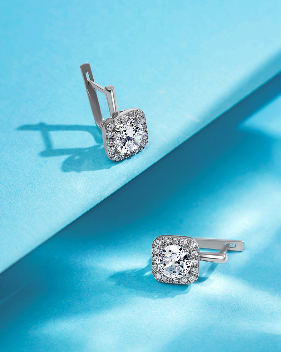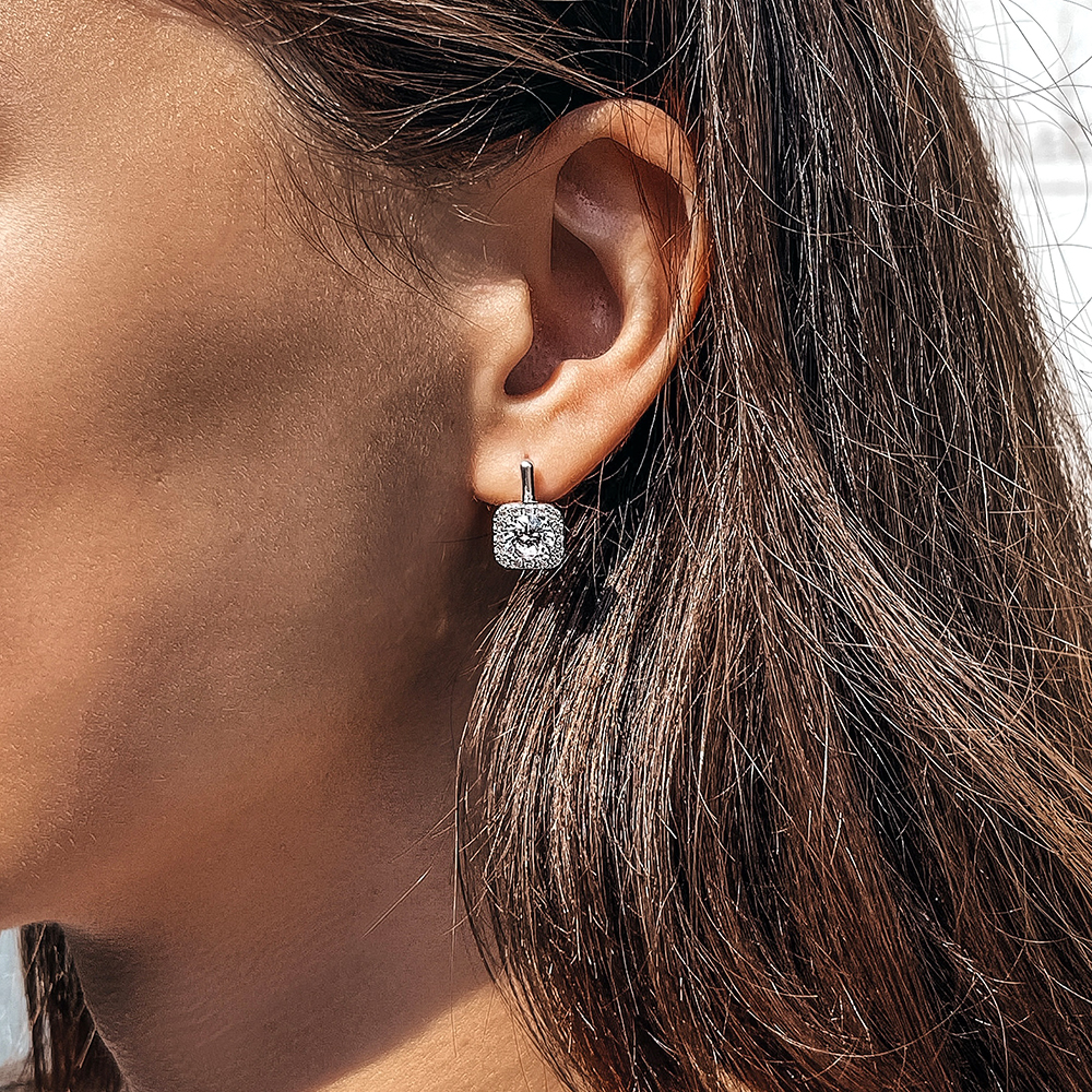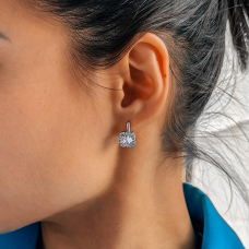 Розкішніі срібні сережки із родієвим покриттям та фіанітами з діамантовим ограновуванням.