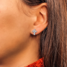 Срібні пусети із родієвим покриттям, фіанітами з діамантовим ограновуванням та гвинтовими застібками.