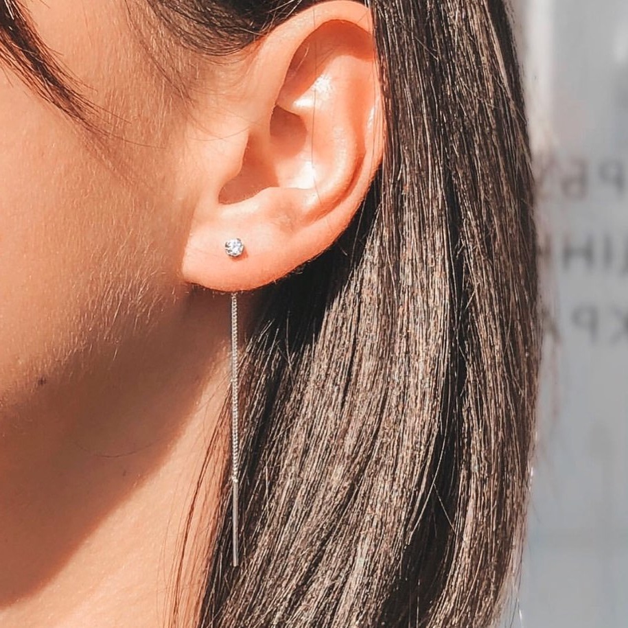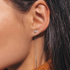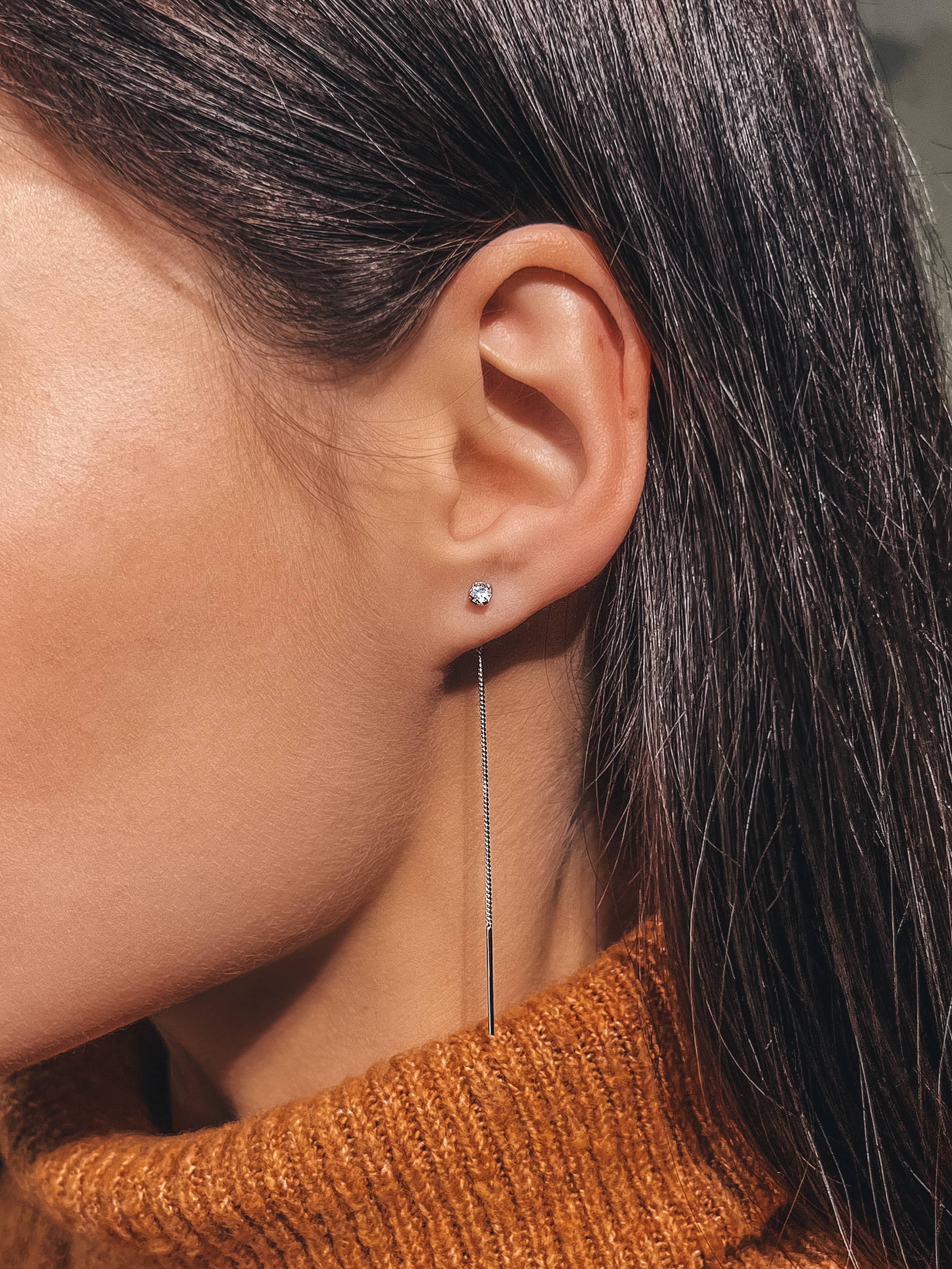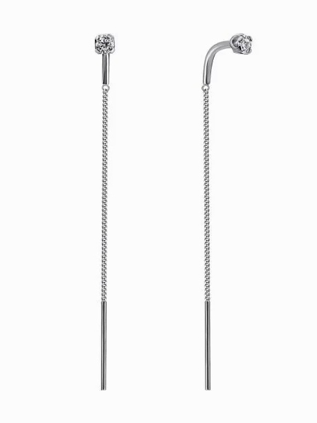 Срібні сережки-протяжки з фіанітами із діамантовим ограновуванням та родієвим покриттям.