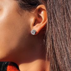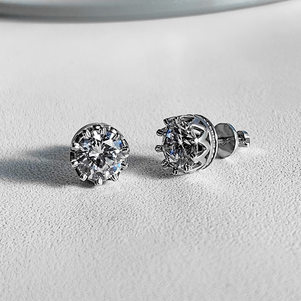 Яскраві сережки із родієвим покриттям, фіанітами з діамантовим ограновуванням та гвигтовими застібками.