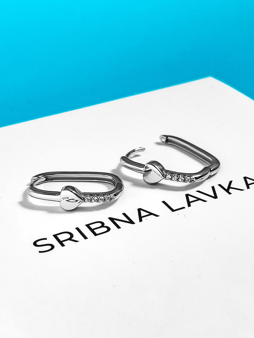 Срібні сережки з серцями та фіанітами. Носіть як самостійну прикрасу або створюйте неповторні комбінації.
