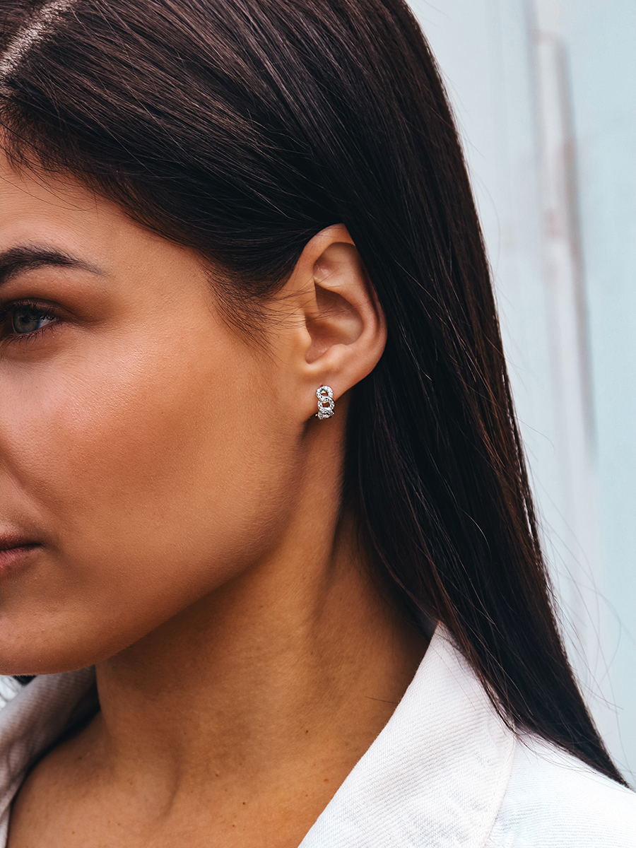 Срібні сережки з фіанітамм та родієвим покриттям.