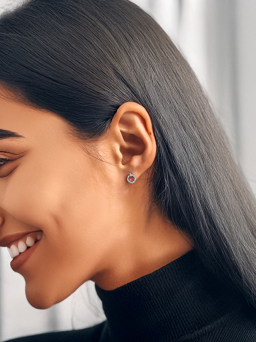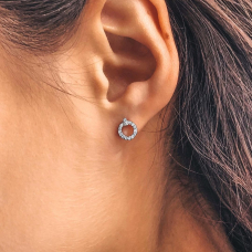 Срібні пусети із родієвим покриттям, фіанітами та надійними і зручними штифтовими застібками.