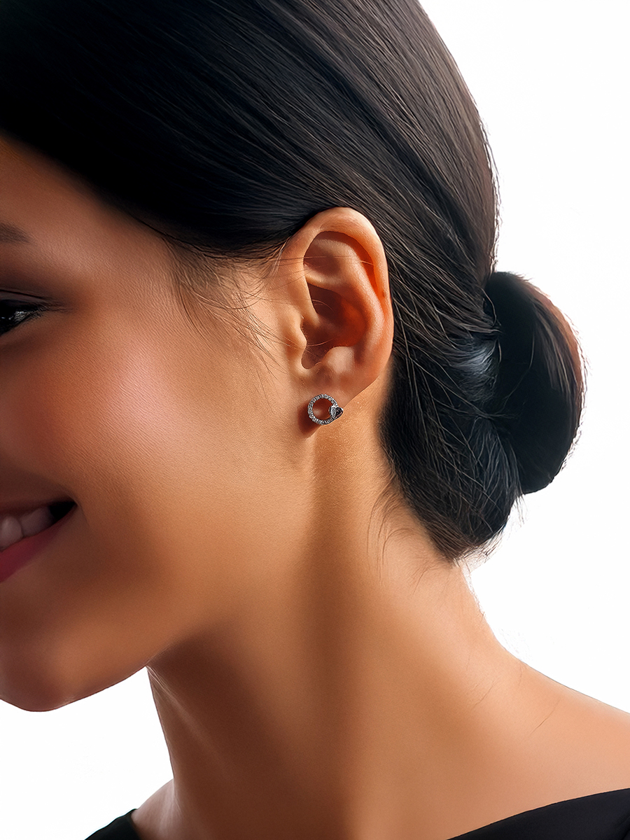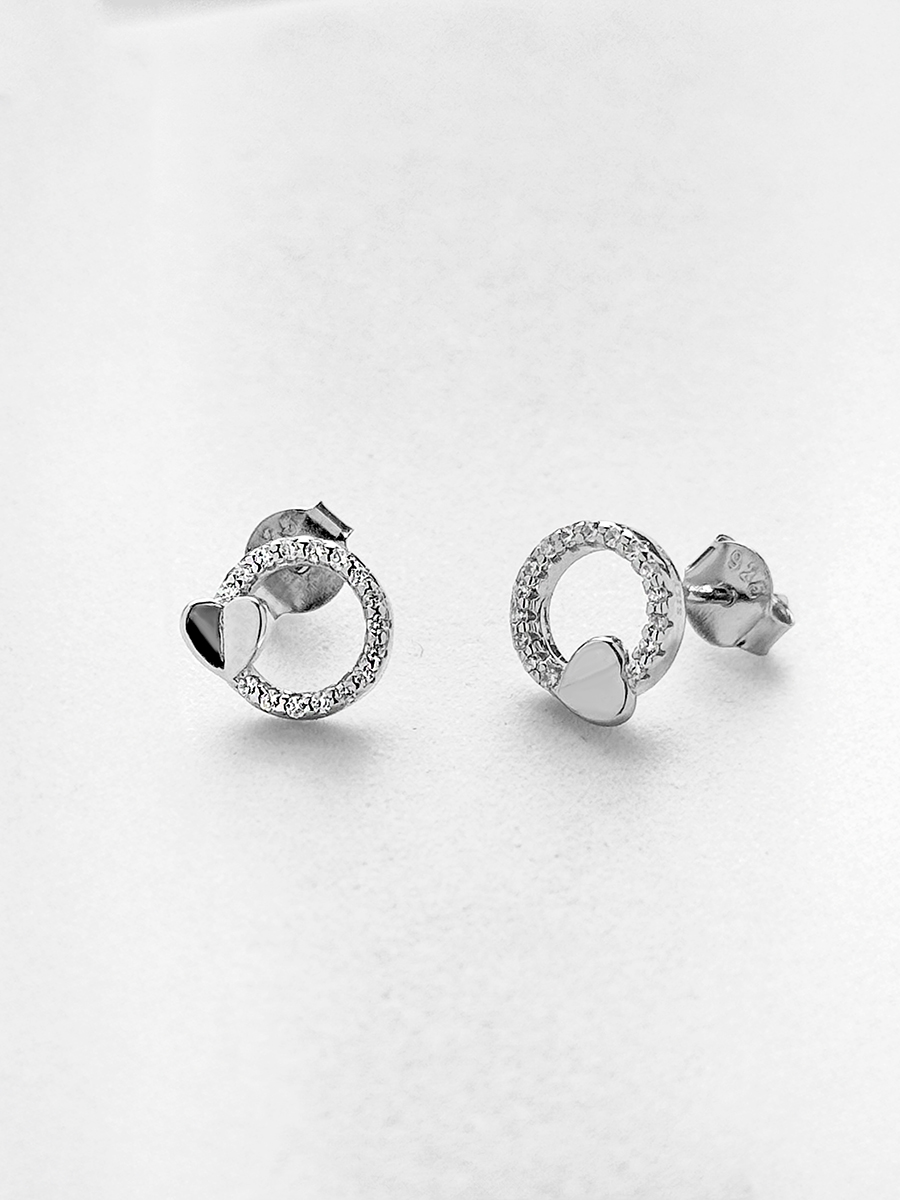 Срібні пусети із родієвим покриттям, фіанітами та надійними і зручними штифтовими застібками.