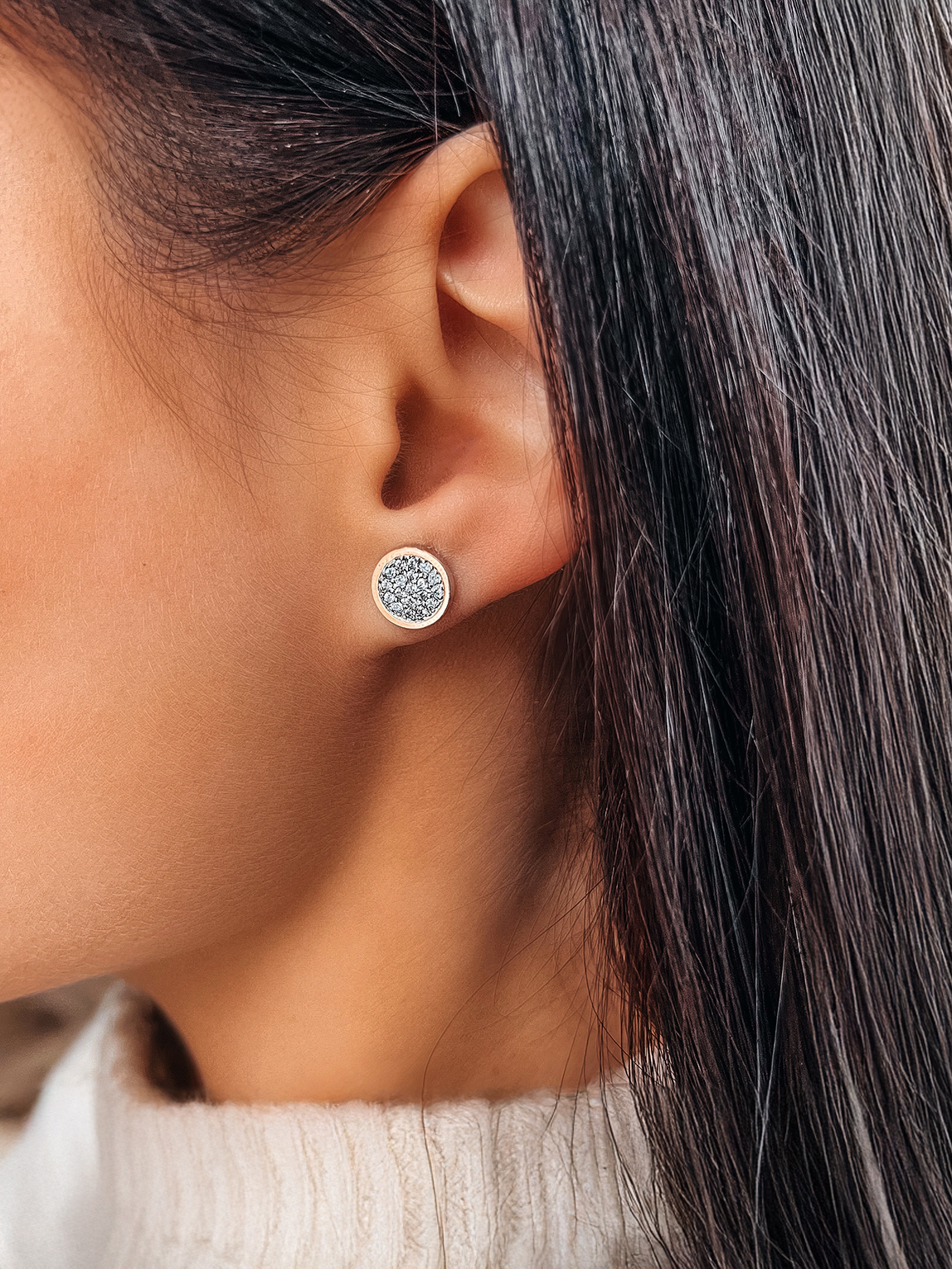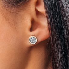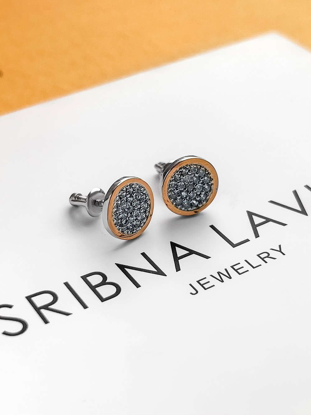 Срібні пусети із родієвим покриттям, фіанітами, натуральним золотом та гвинтовими застібками.