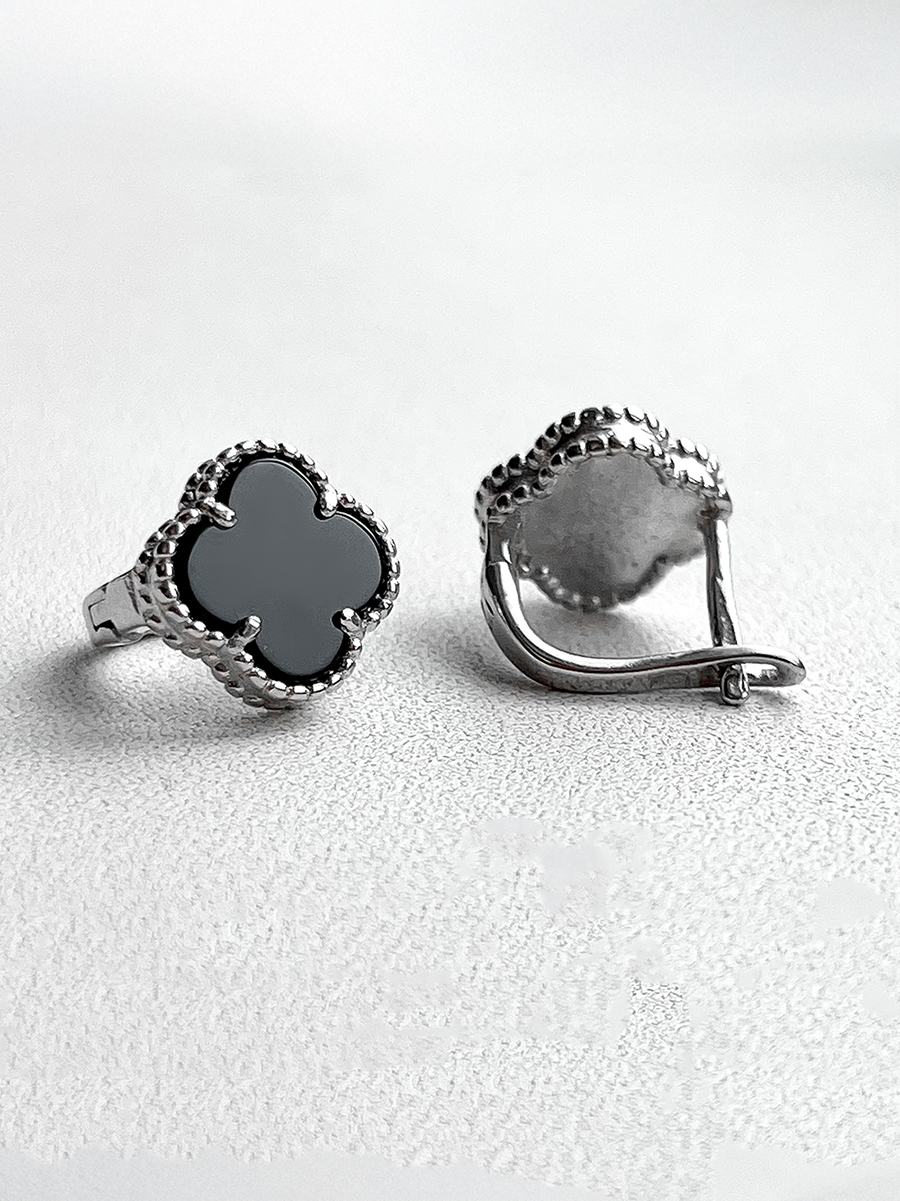 Трендові срібні сережки з оніксом та родієвим покриттям, які додають образу елегантності та розкіші.