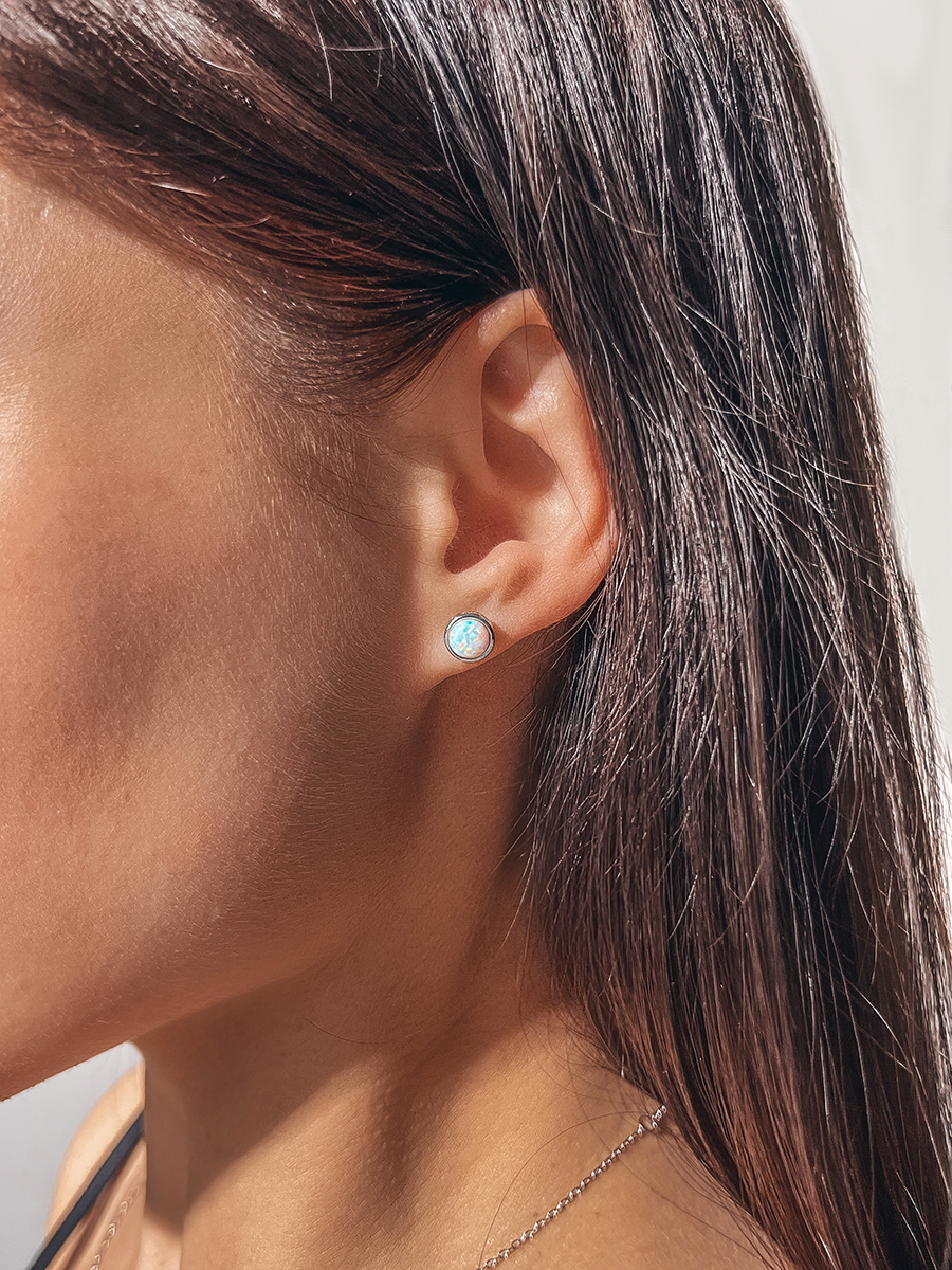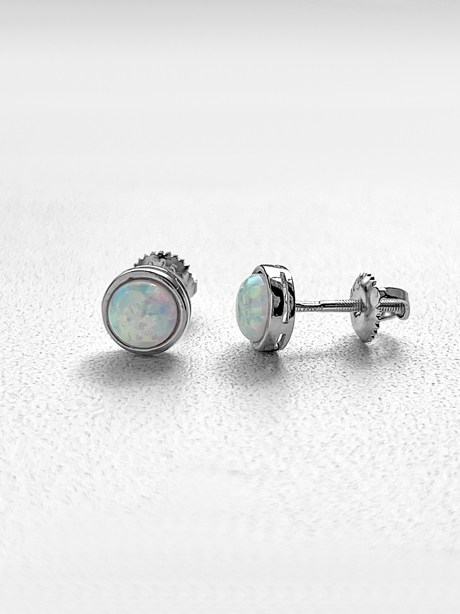 Срібні пусети із родієвим покриттям та опалом.