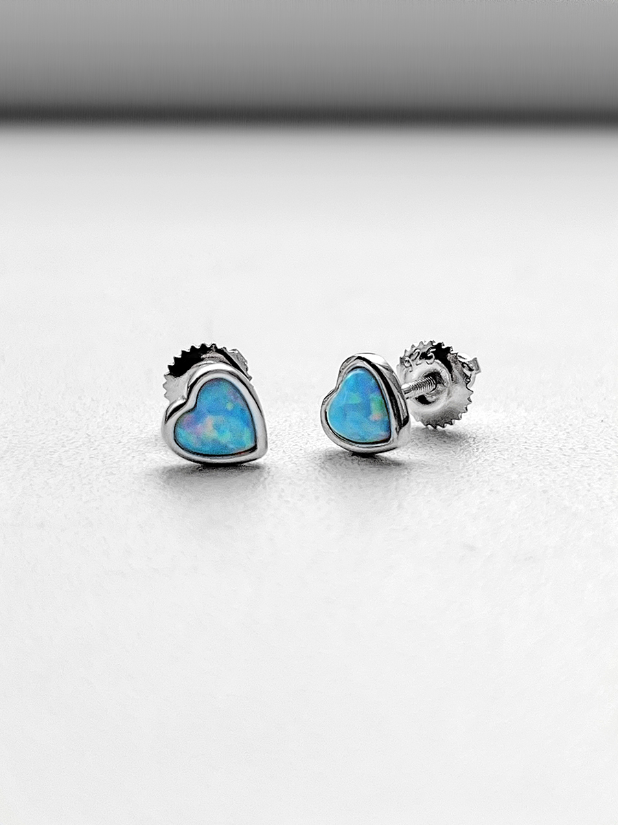 Срібні пусети із родієвим покриттям та опалом.