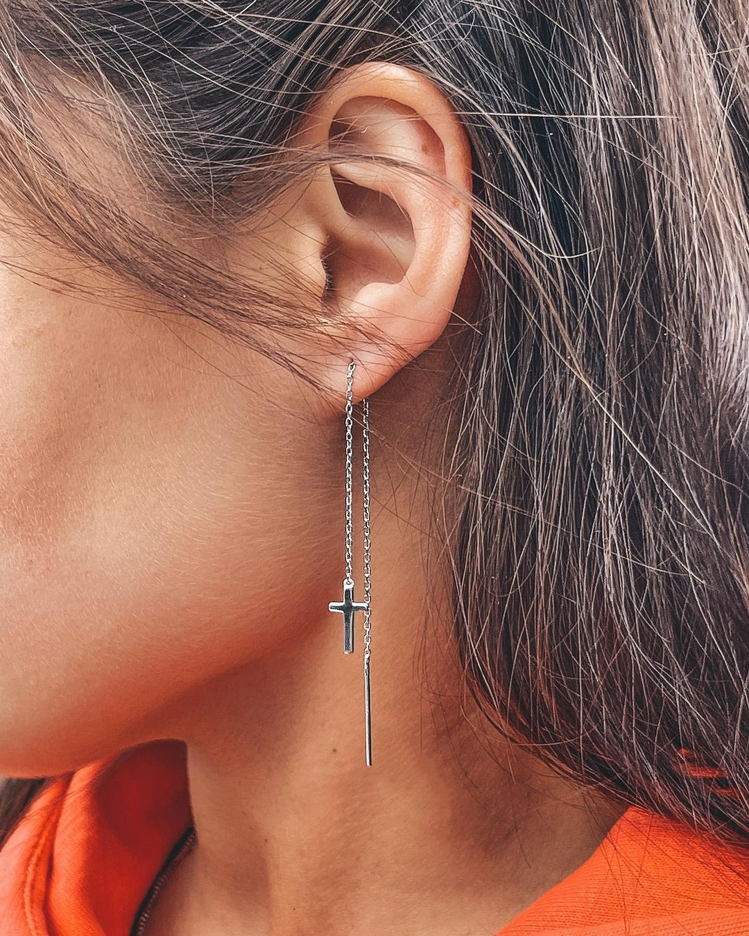Сережки без вставок Срібло 925° (родій) с2/2005
