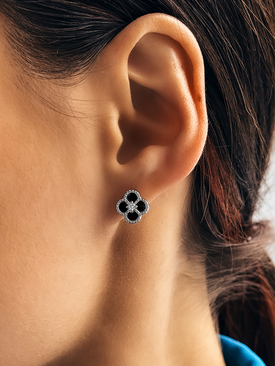 Сережки онікс Срібло 925° (родій) 978079 ч